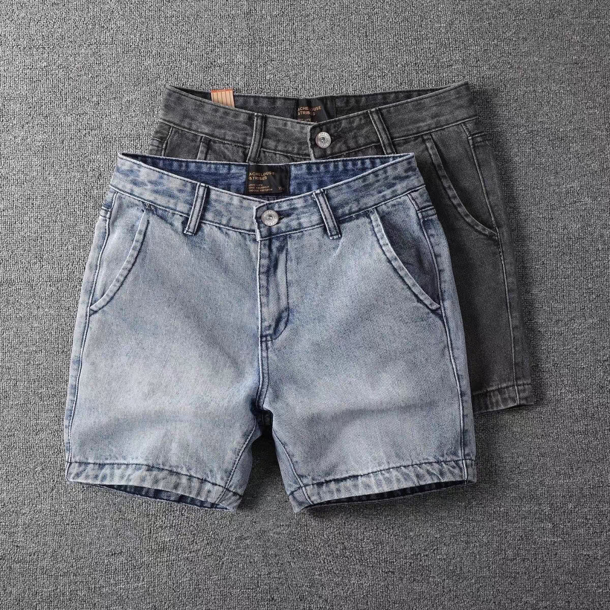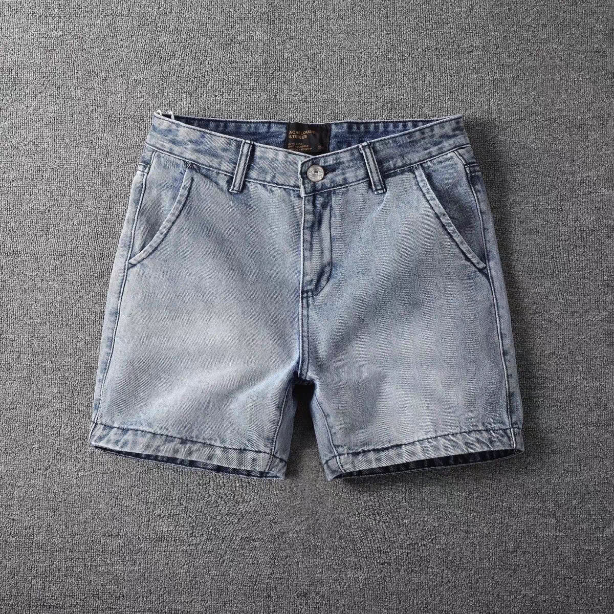 여름 레트로 데님반바지 남성용 3점 4점 팬츠 워싱 슬림핏 3점 4점 팬츠 반바지 트렌디 남성팬츠스토어 가기