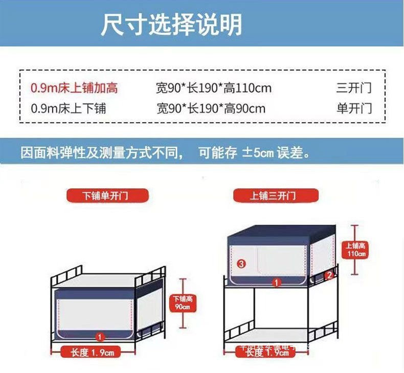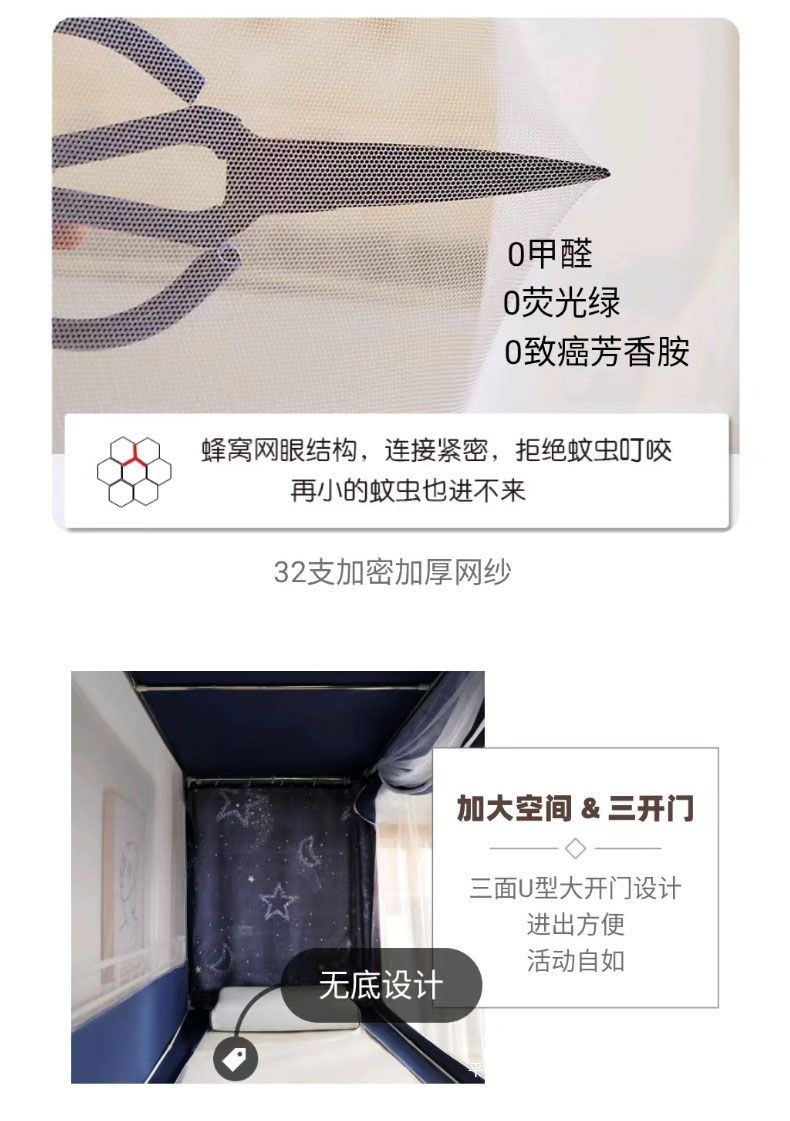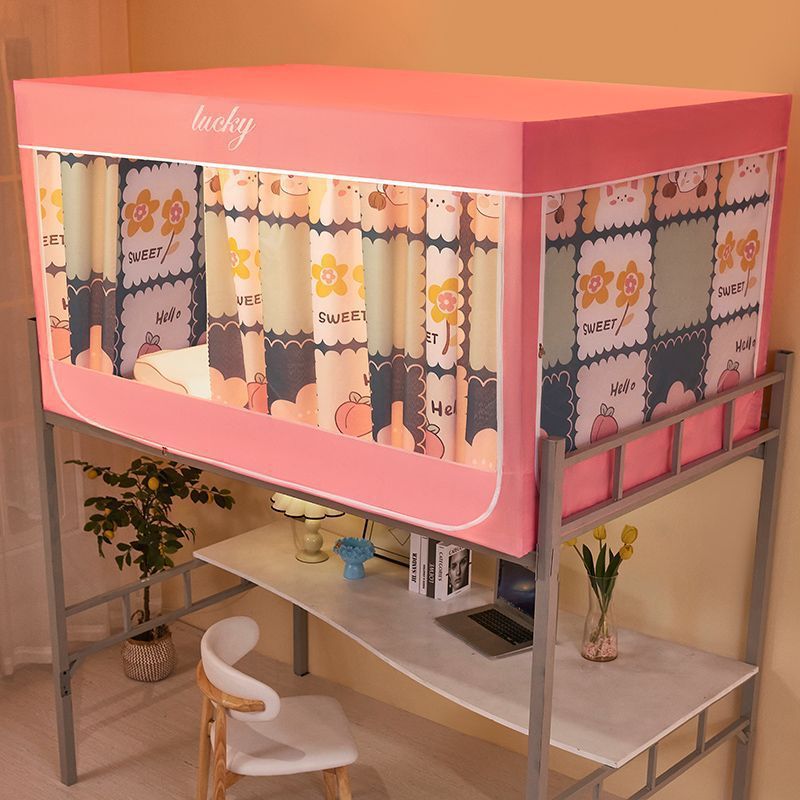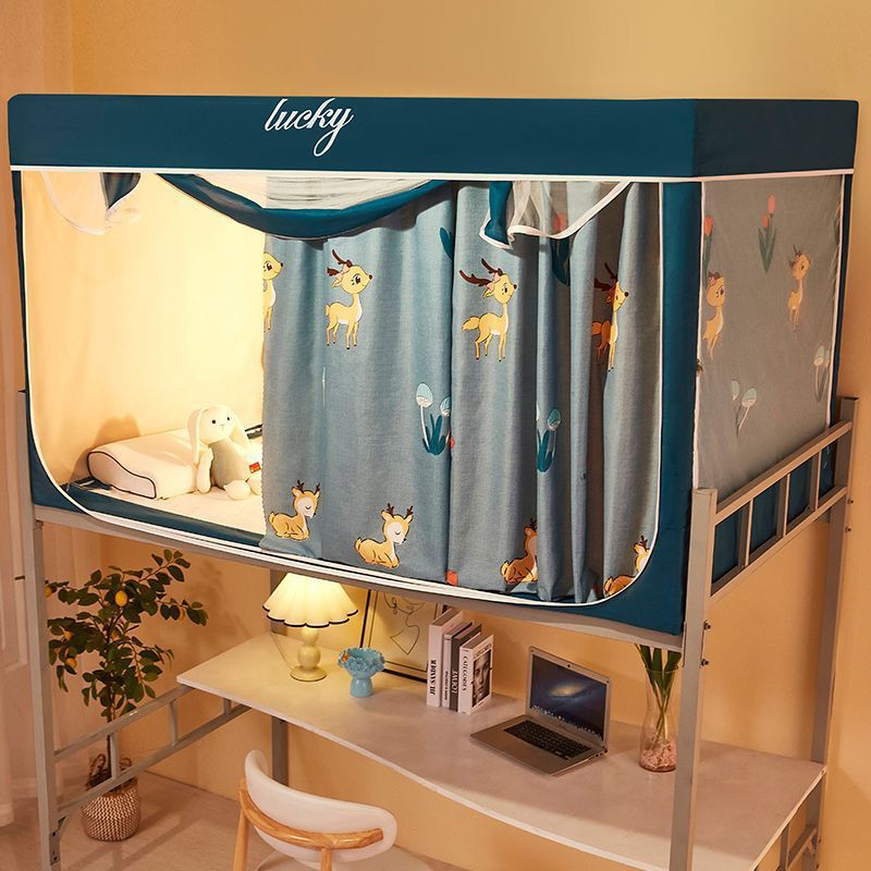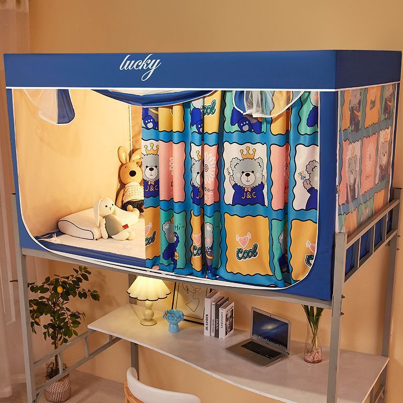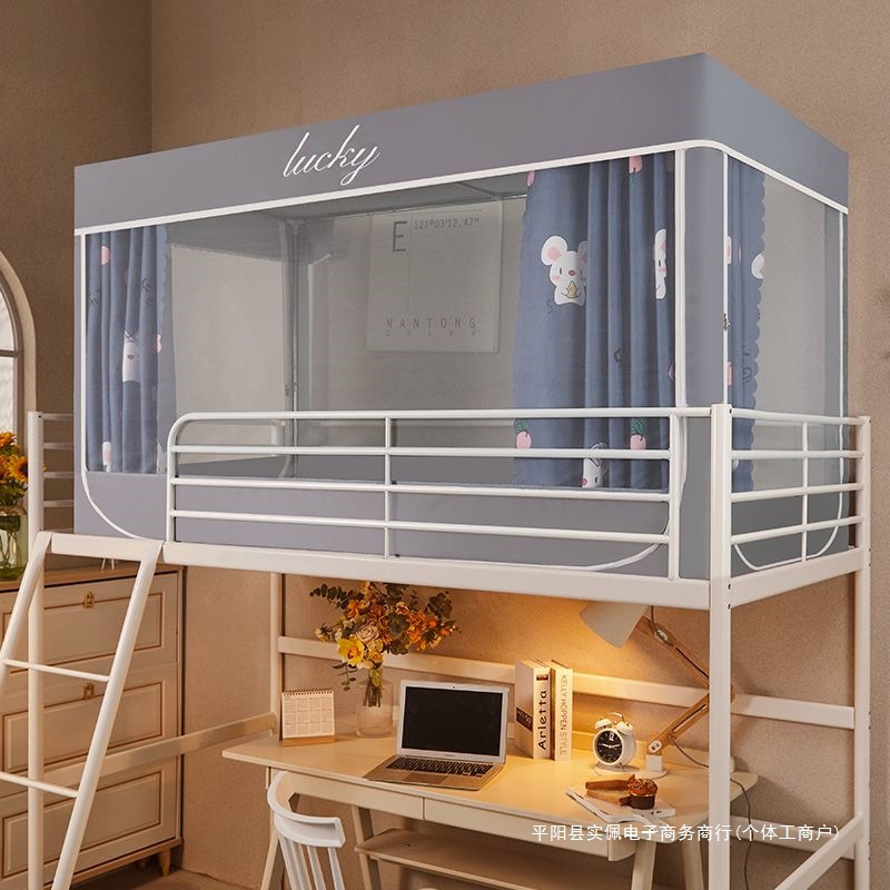 3도어 하단 침대가 있는 싱글 침대, 여름용 차광 학생 기숙사 침대 커튼, 모기장 일체형 홈 침실