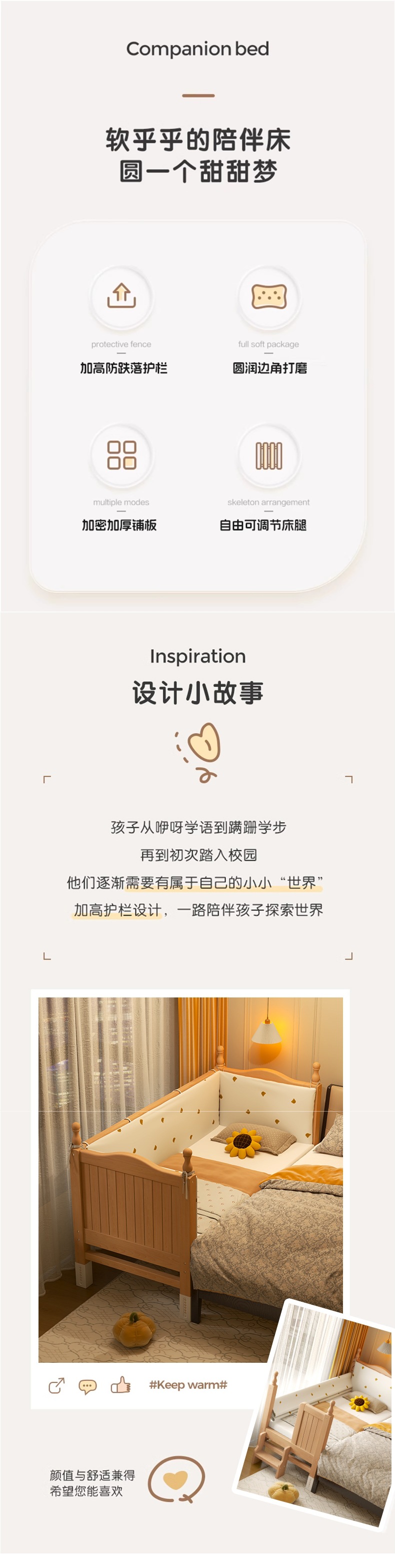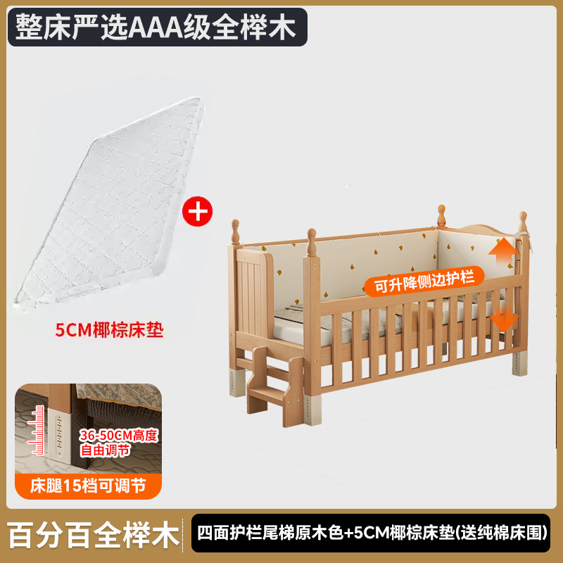 • 나무로 만든 4면 가드레일(꼬리 사다리 포함) + 5cm 코코넛 야자 매트리스(순면 침대 옆 포함) 높이 증가 포함