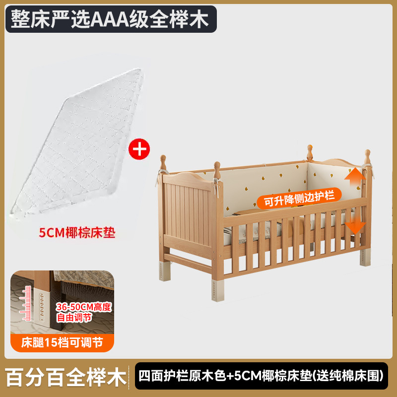 • 통나무 4면 가드레일 + 5cm 코코넛 야자 매트리스(순면 침대 옆면 포함) 높이 조절 침대 다리 15개 포함