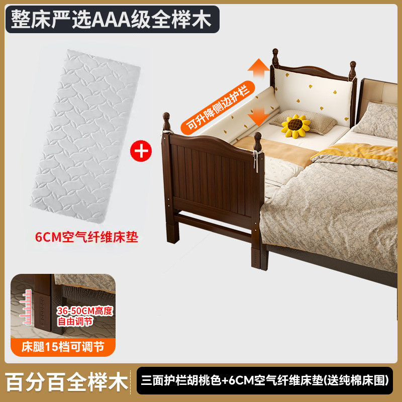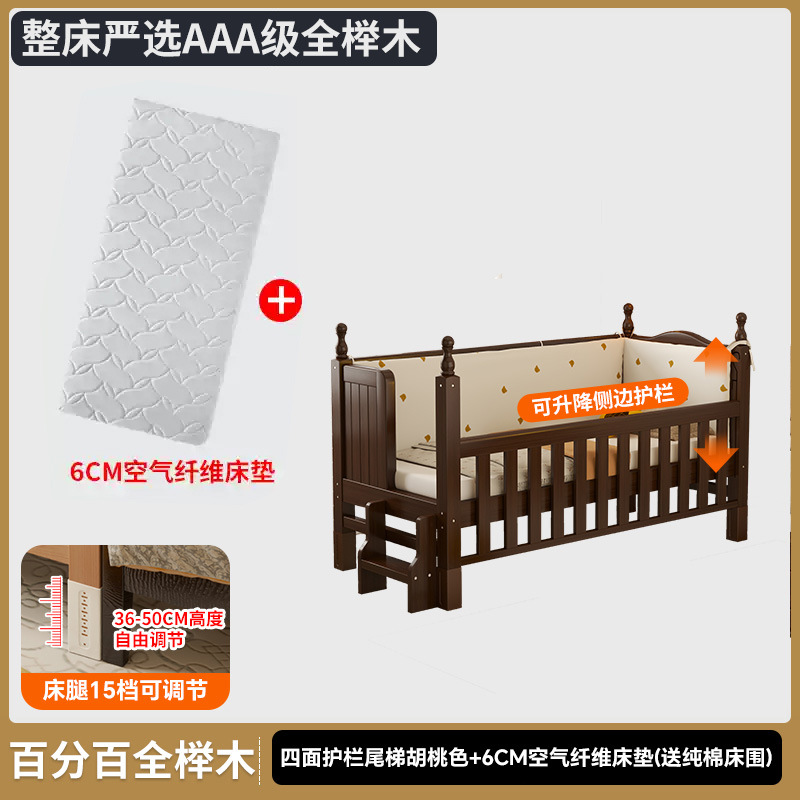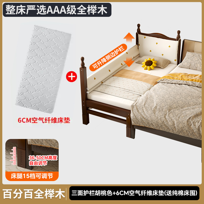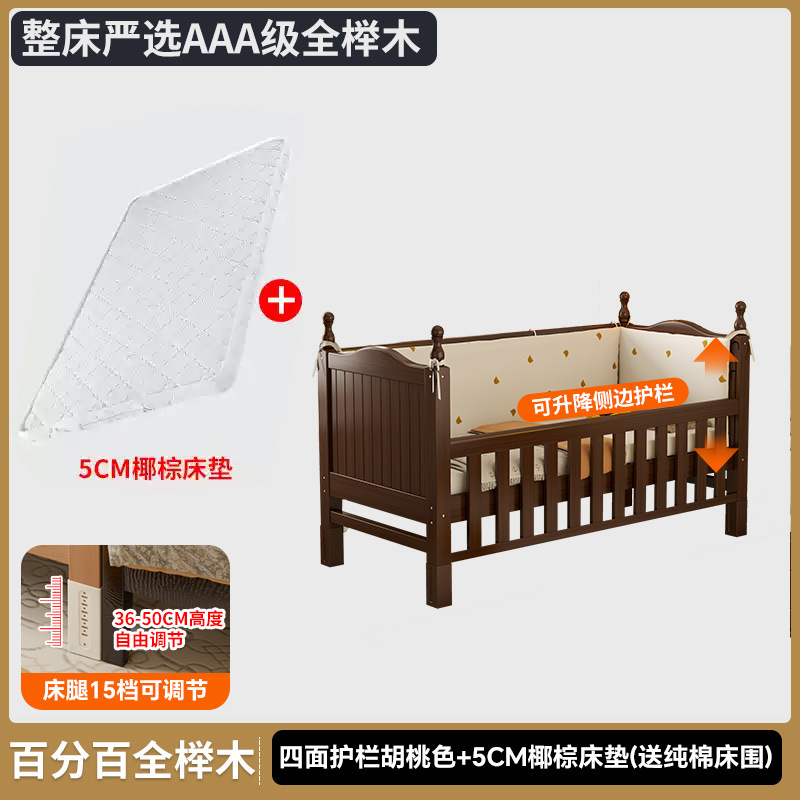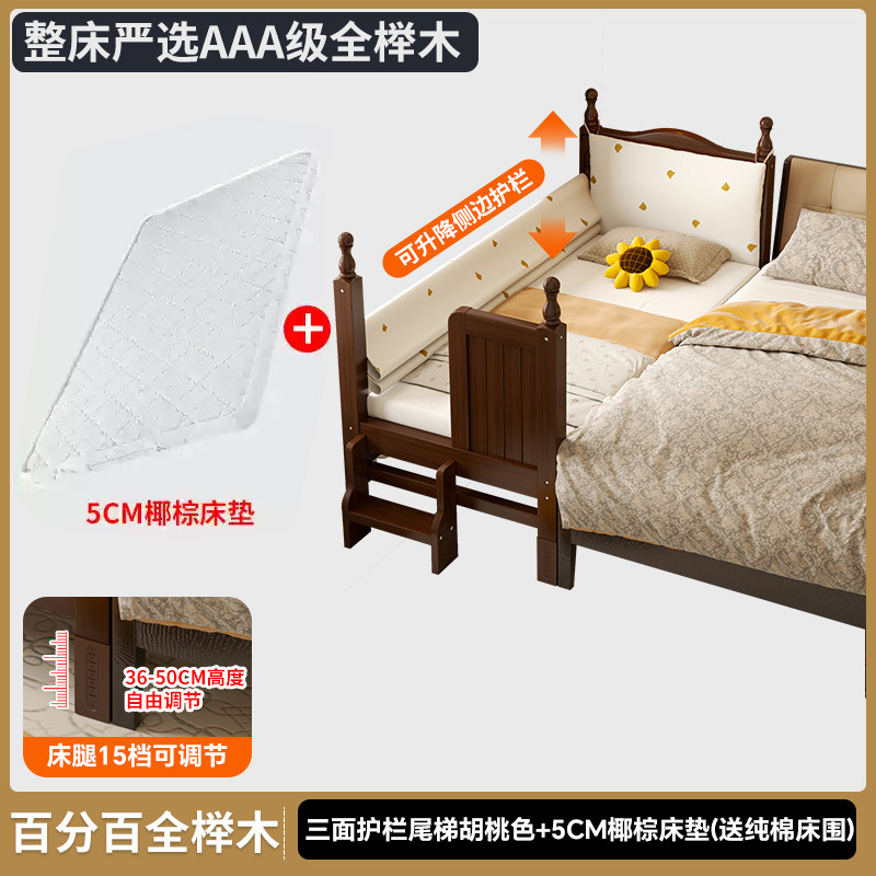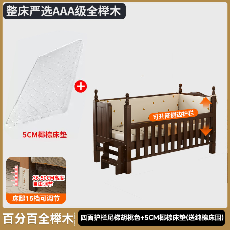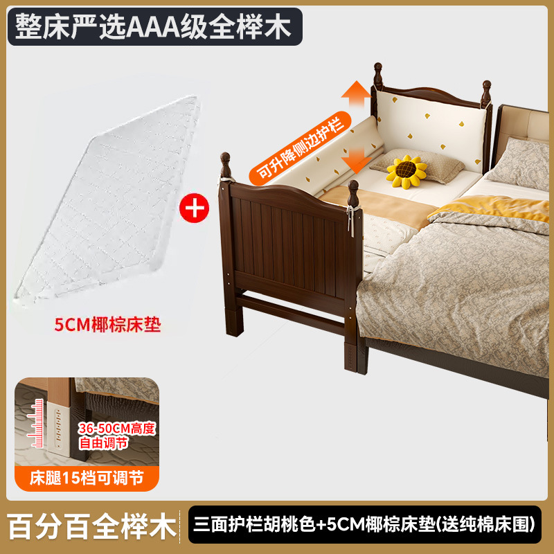 • 호두색 3면 가드레일 + 5cm 코코넛 야자 매트리스(순면 침대 옆면 포함) 높이 조절 가능 침대 다리 포함