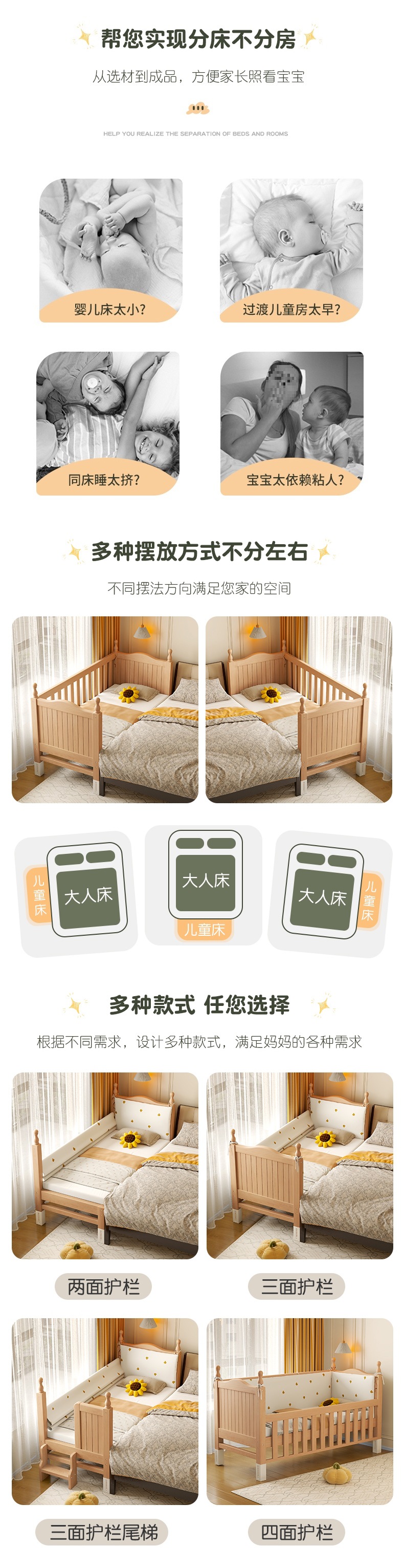 • 나무 3면 가드레일 + 꼬리 사다리 + 5cm 코코넛 야자 매트리스(순면 침대 옆면 포함) 높이 증가 포함