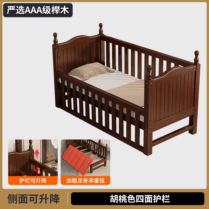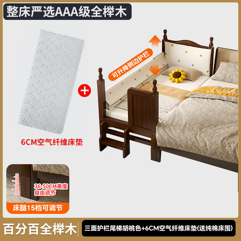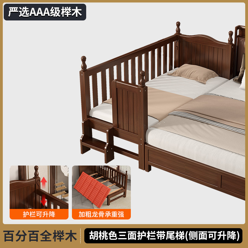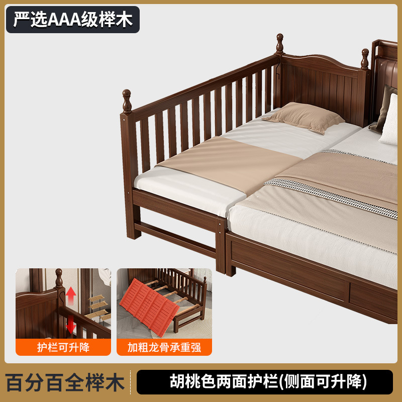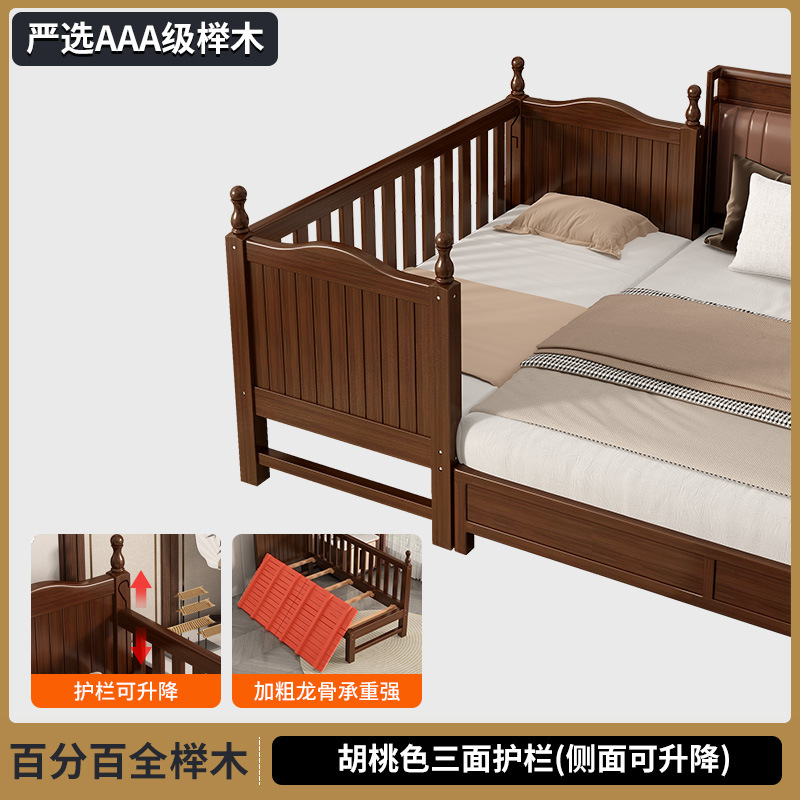 • 호두색 3면 가드레일 네이키드 침대(측면 리프팅 가능), 15단계 조절 가능한 높이 조절 다리 포함