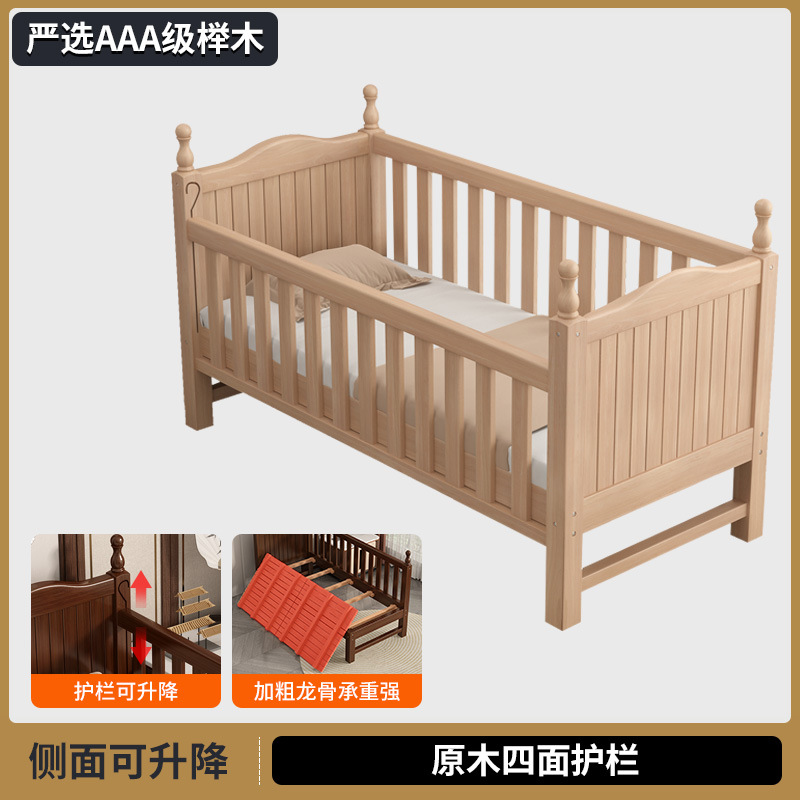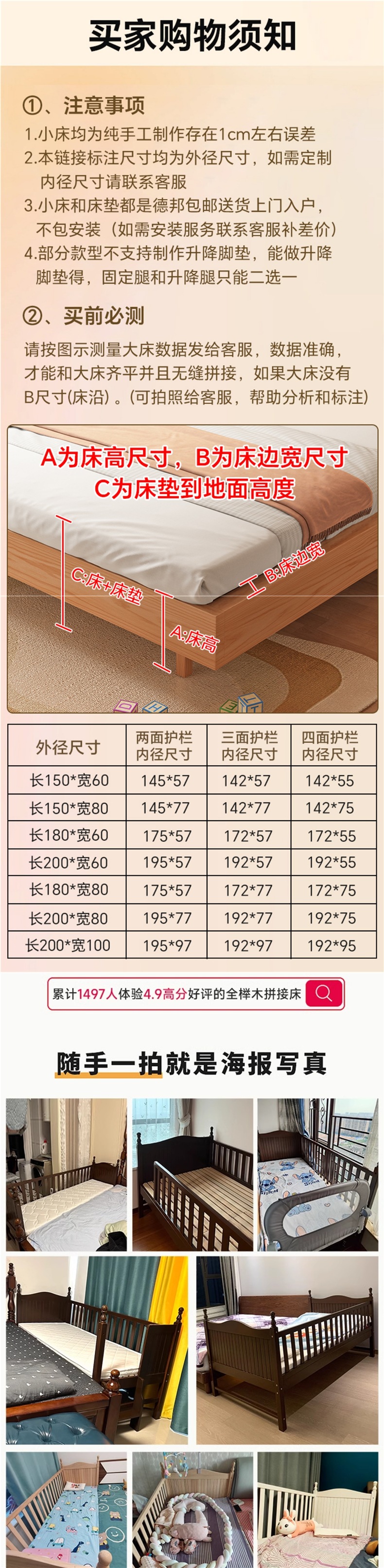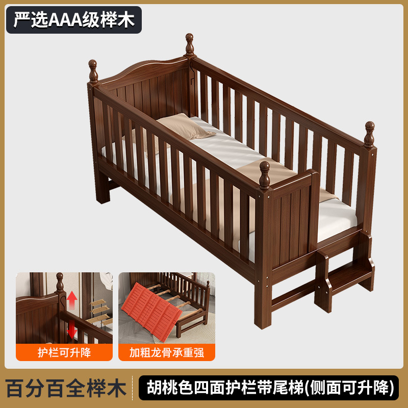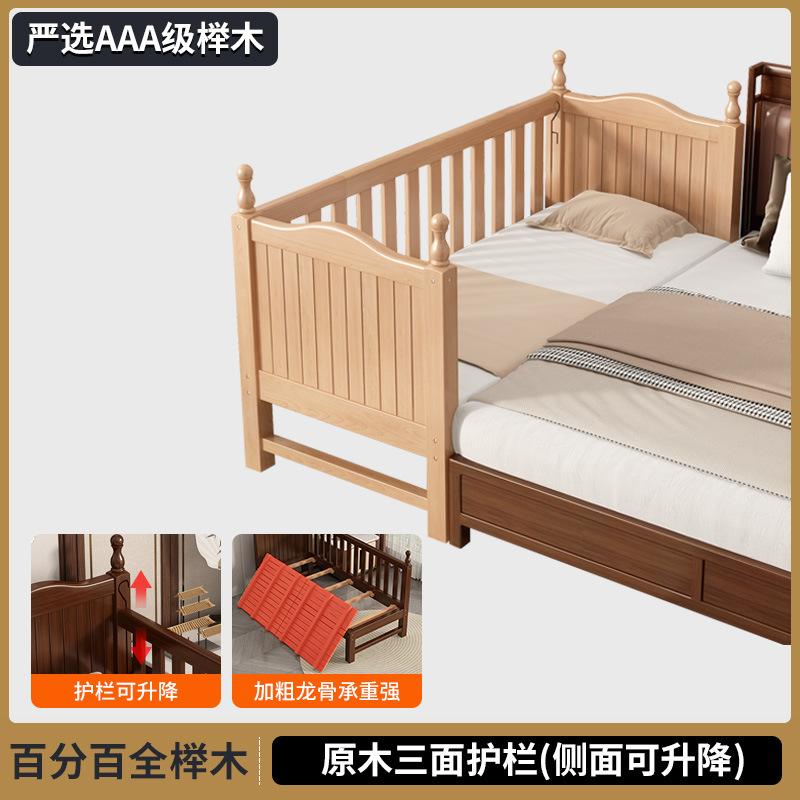 • 호두색 3면 가드레일 네이키드 침대(측면 리프팅 가능), 15단계 조절 가능한 높이 조절 다리 포함