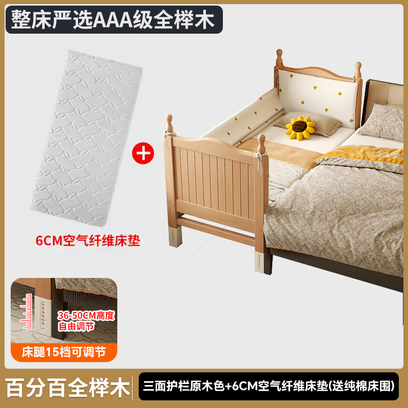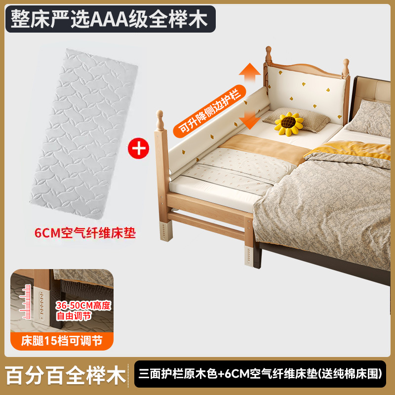 • 통나무 삼면 가드레일 + 6cm 에어 섬유 매트리스(순면 침대 옆면 포함) 및 높이 조절 침대
