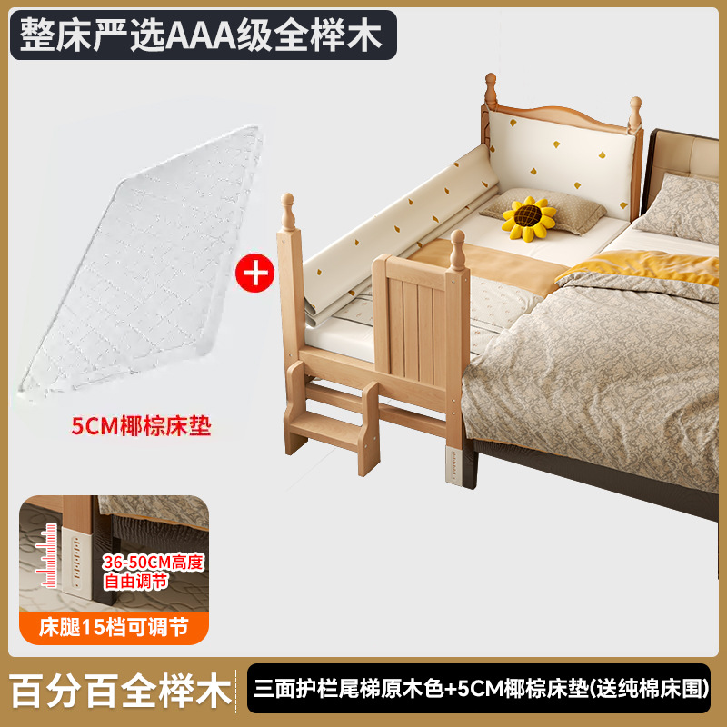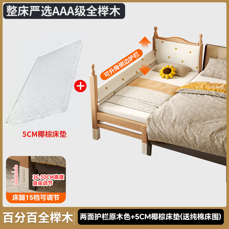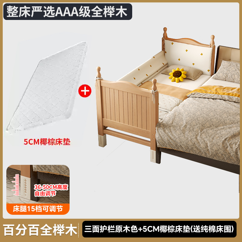 • 통나무 삼면 가드레일 + 5cm 코코넛 야자 매트리스(순면 침대 옆면 포함) 높이 조절 침대 다리 포함 15