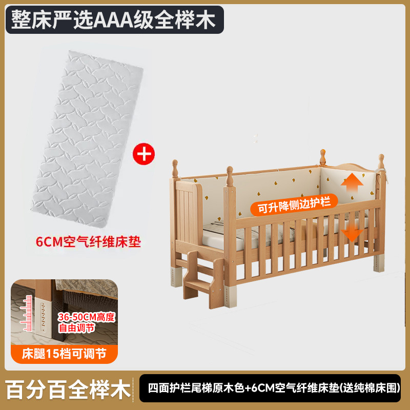 • 통나무 4면 가드레일 + 6cm 에어 섬유 매트리스(순면 침대 옆면 포함) 및 높이 조절 침대