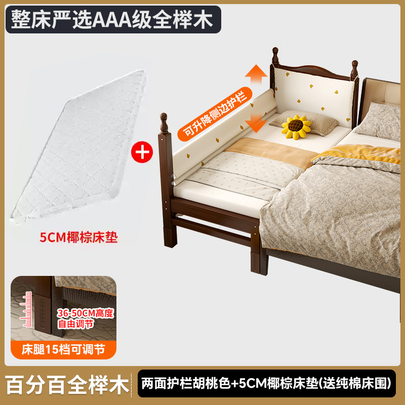 • 월넛 컬러 양면 가드레일 + 5cm 코코넛 야자 매트리스(순면 침대 옆면 포함) 높이 조절 가능 침대 다리 포함