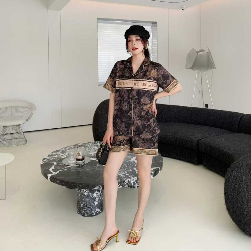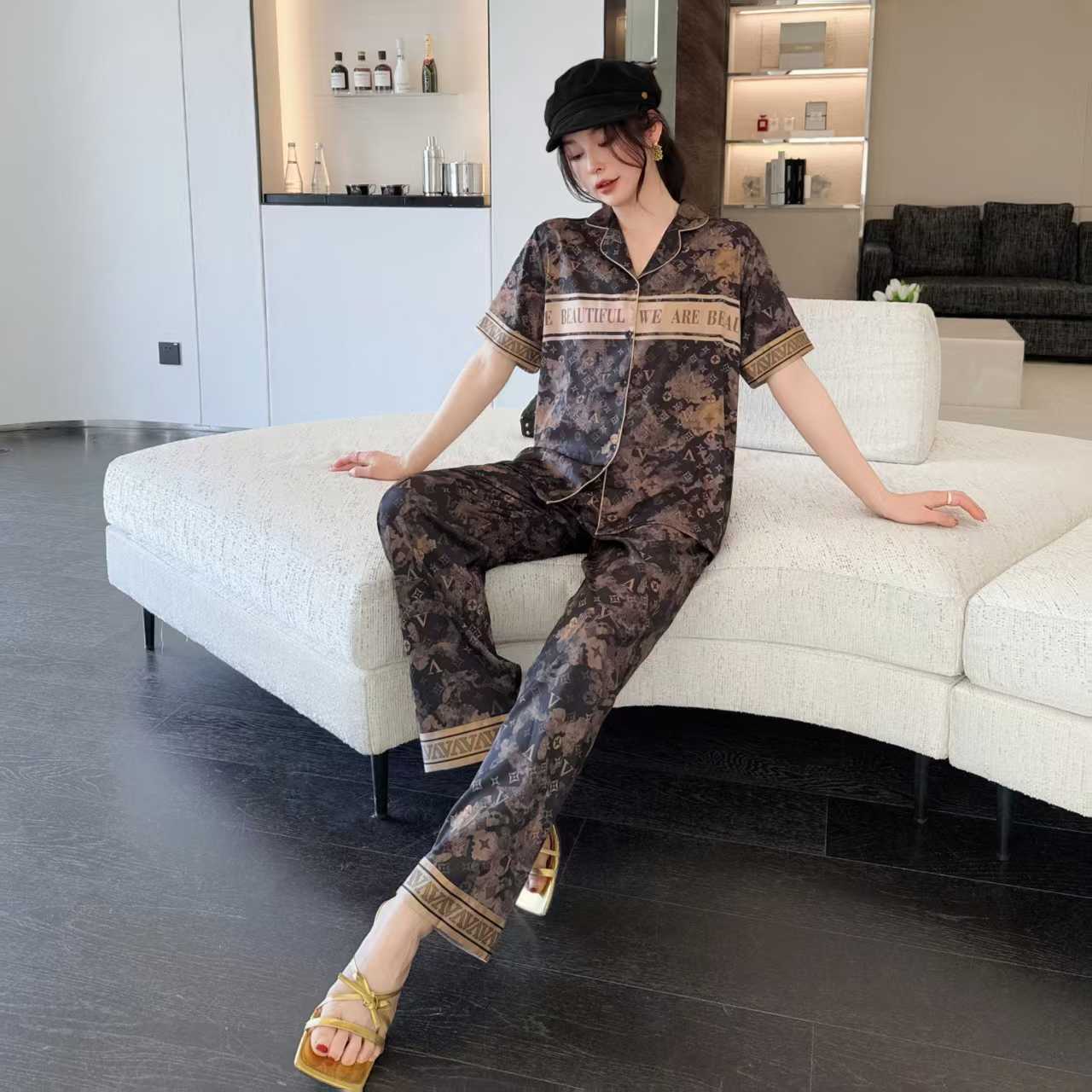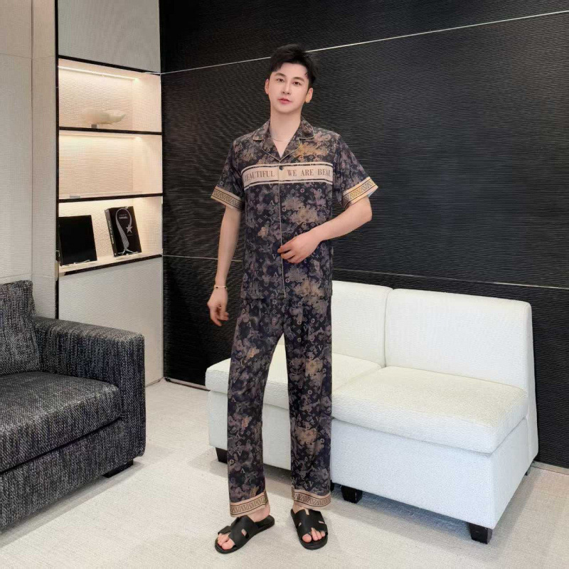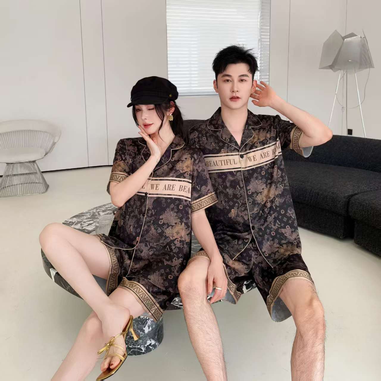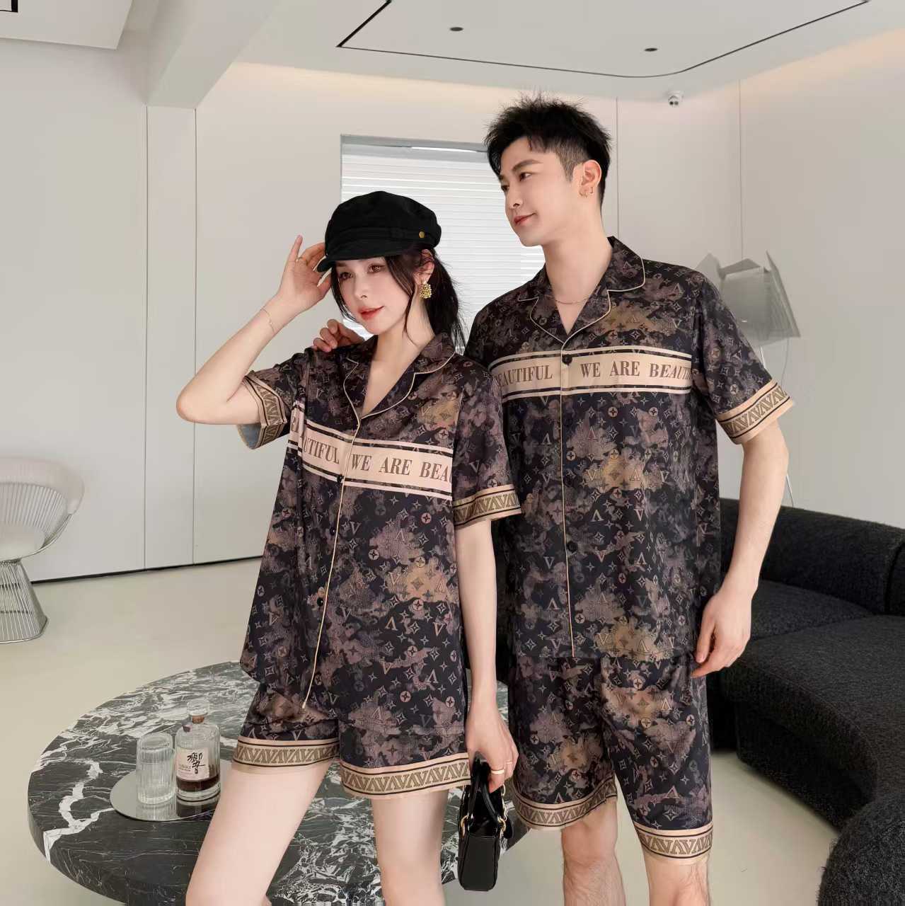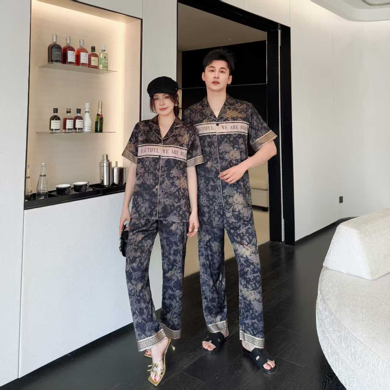 봄 여름 신작 커플 남녀 잠옷 아이스 실크 하이엔드 럭셔리 빅 브랜드 스타일 3피스 홈웨어 세트