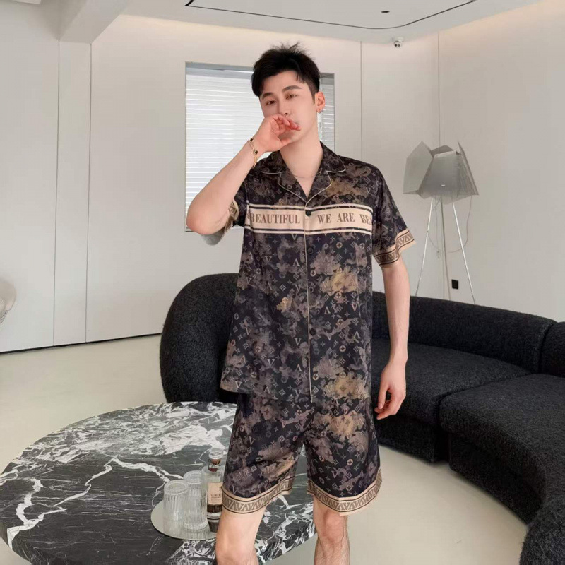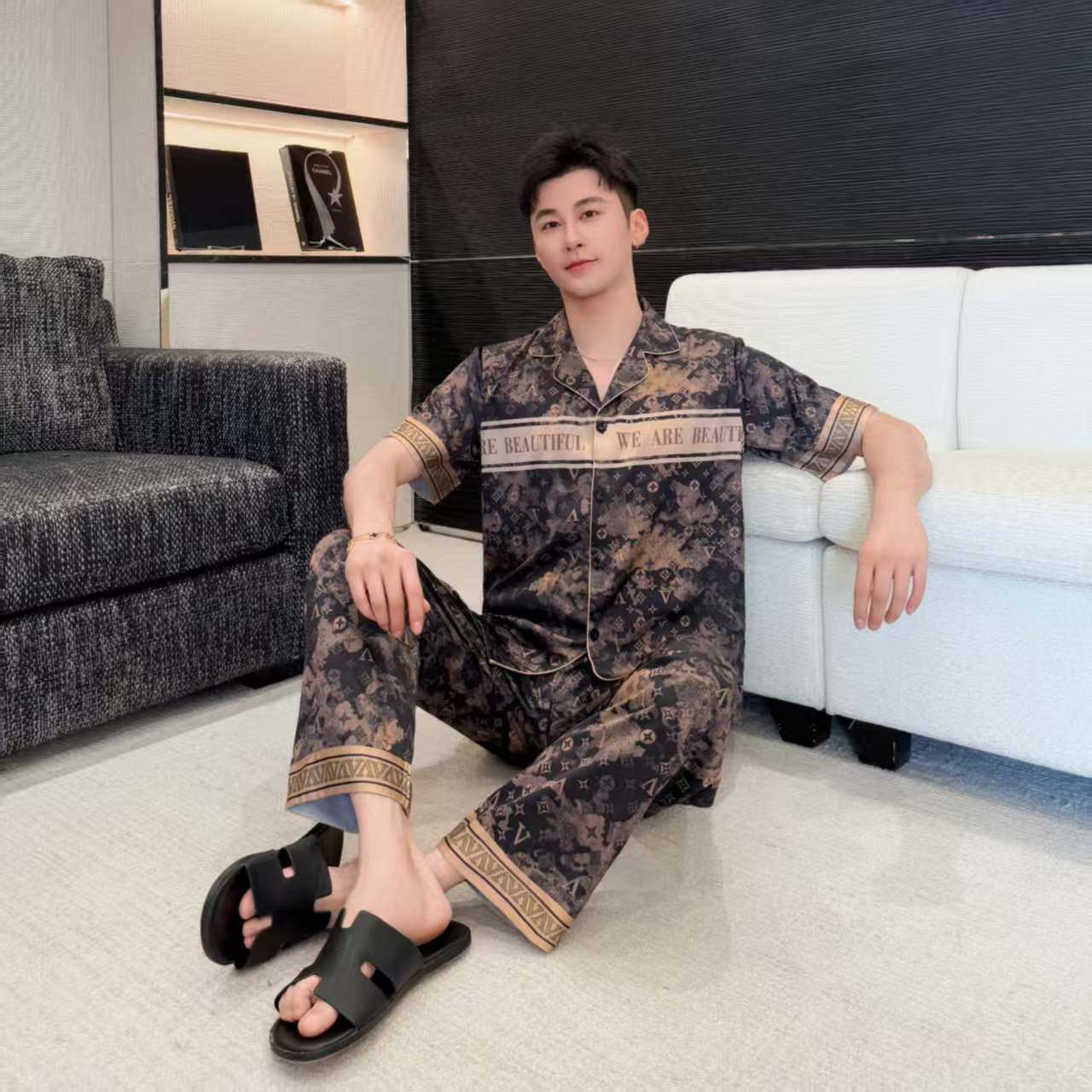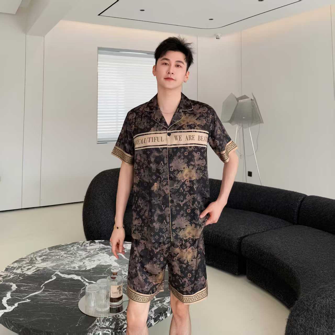 봄 여름 신작 커플 남녀 잠옷 아이스 실크 하이엔드 럭셔리 빅 브랜드 스타일 3피스 홈웨어 세트스토어 가기