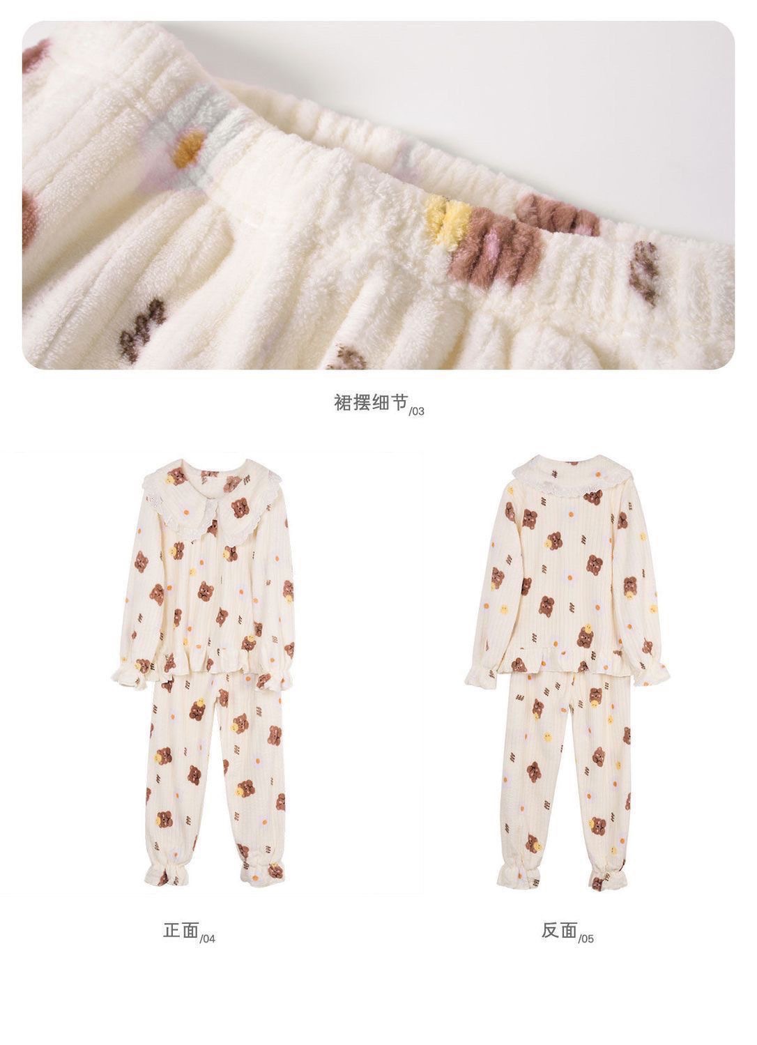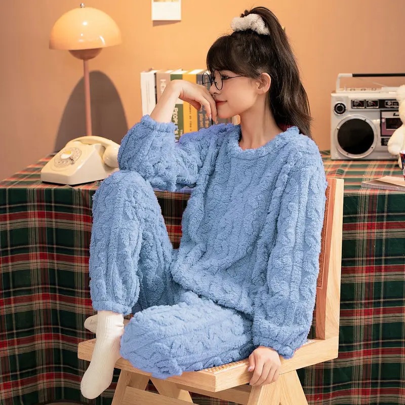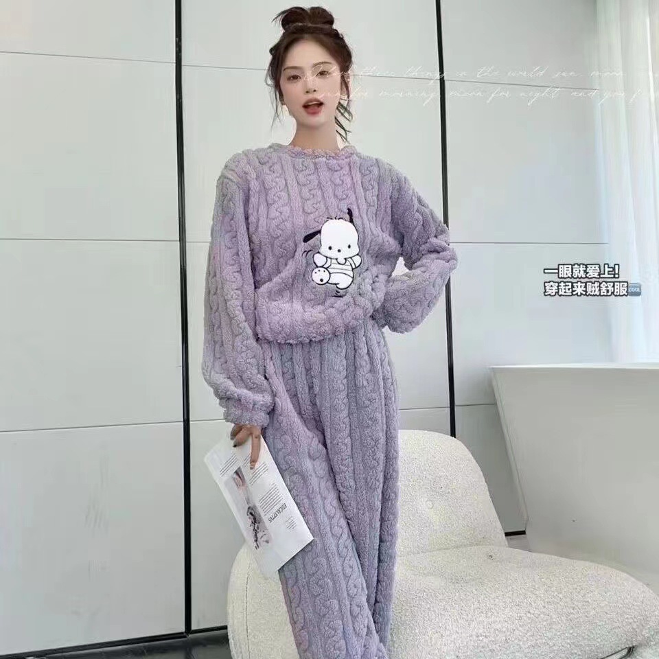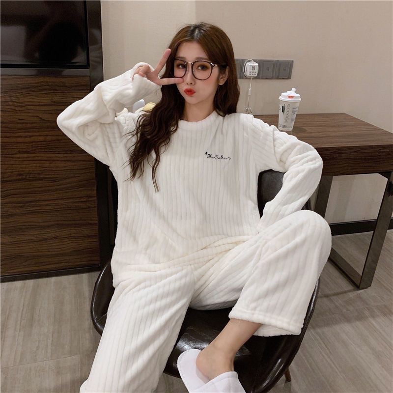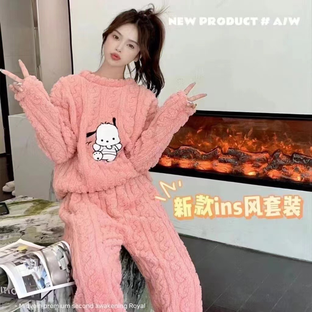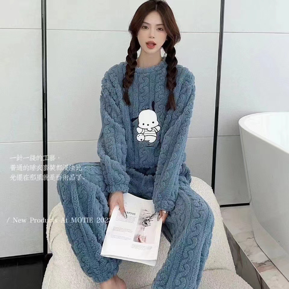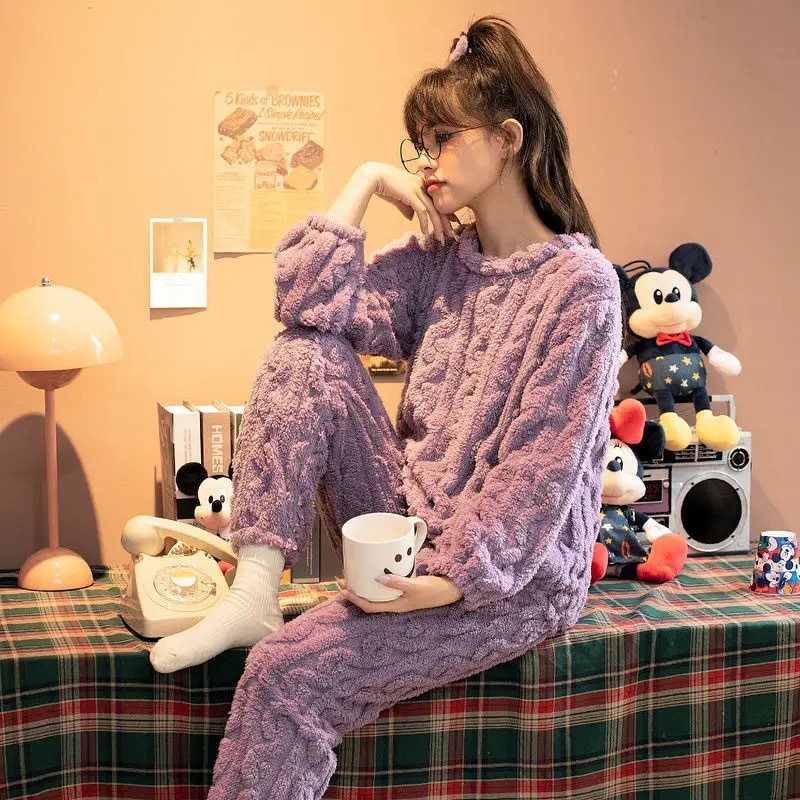 2025 가을, 겨울 산호 벨벳 잠옷 홈웨어 플란넬 대형 두꺼운 귀여운 패션 롱 가디건 여성용 세트
