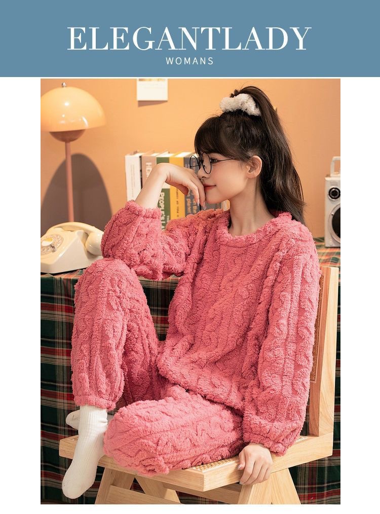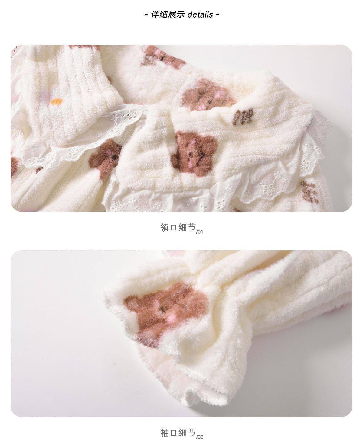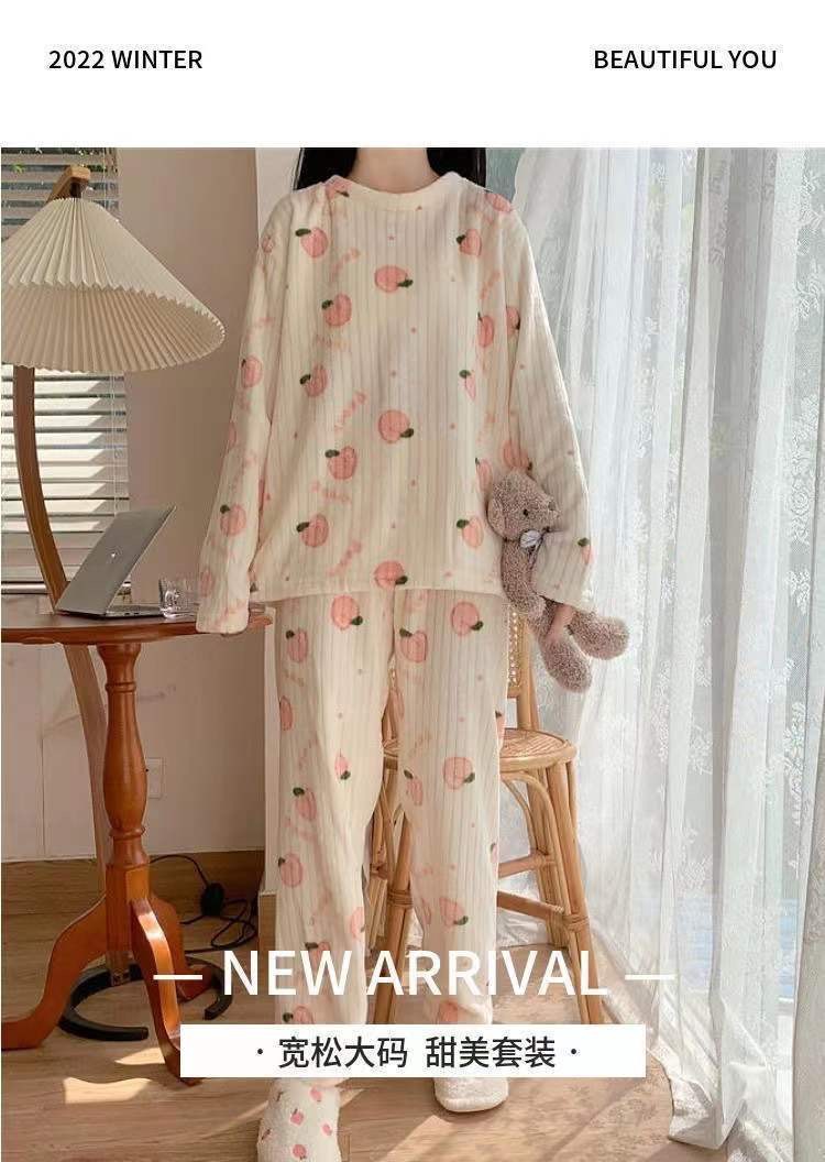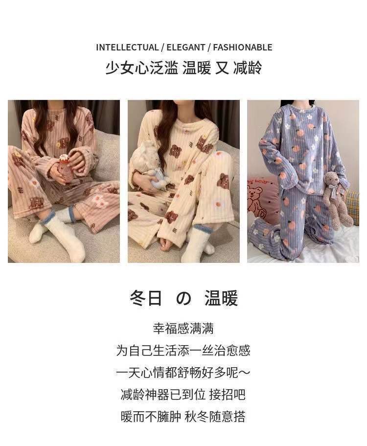 2025 가을, 겨울 산호 벨벳 잠옷 홈웨어 플란넬 대형 두꺼운 귀여운 패션 롱 가디건 여성용 세트스토어 가기