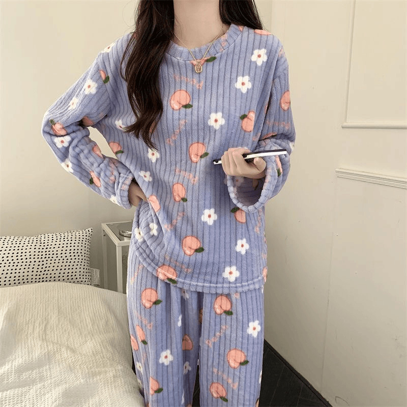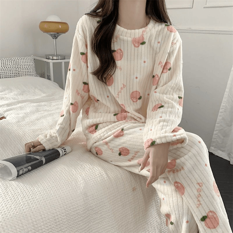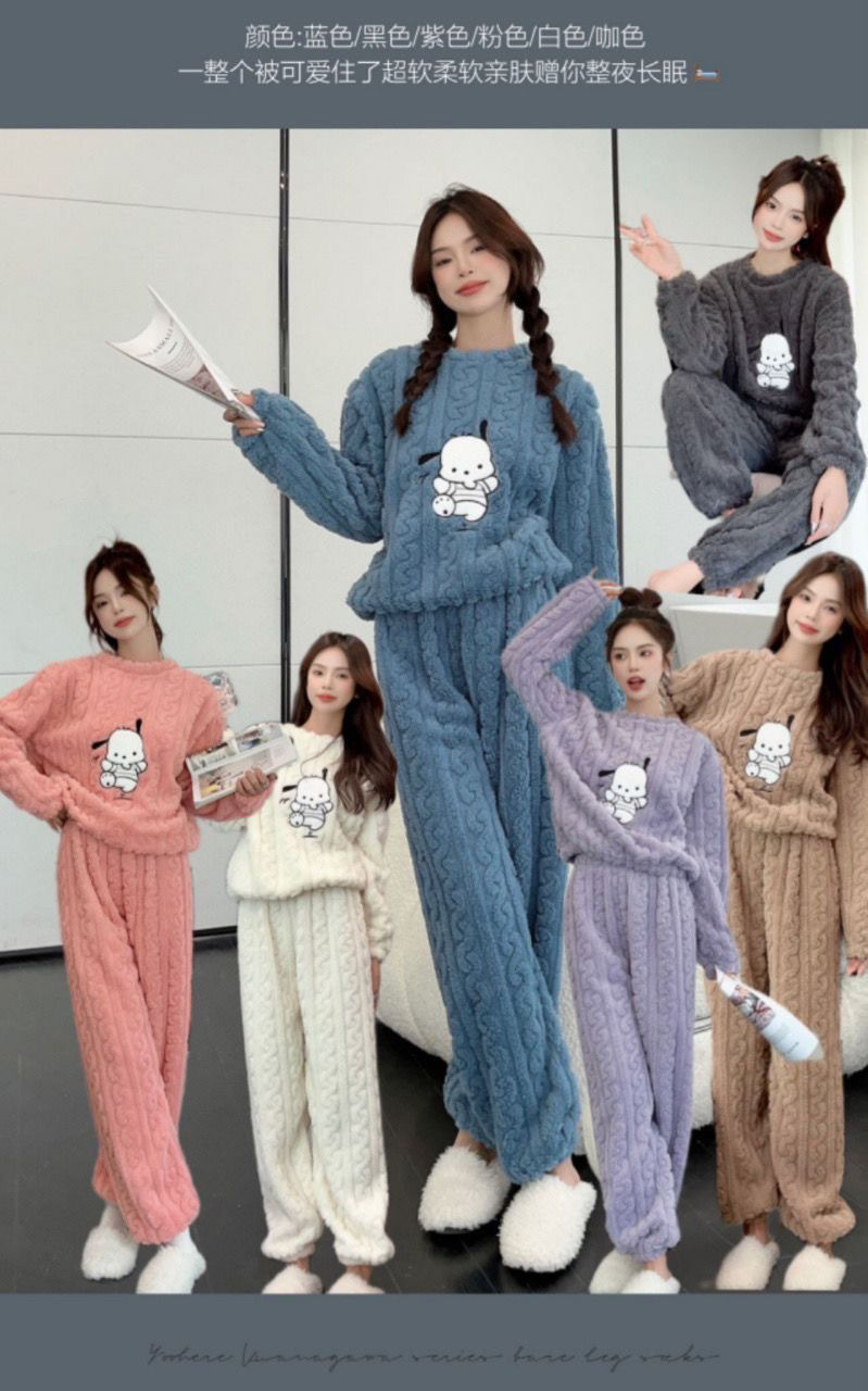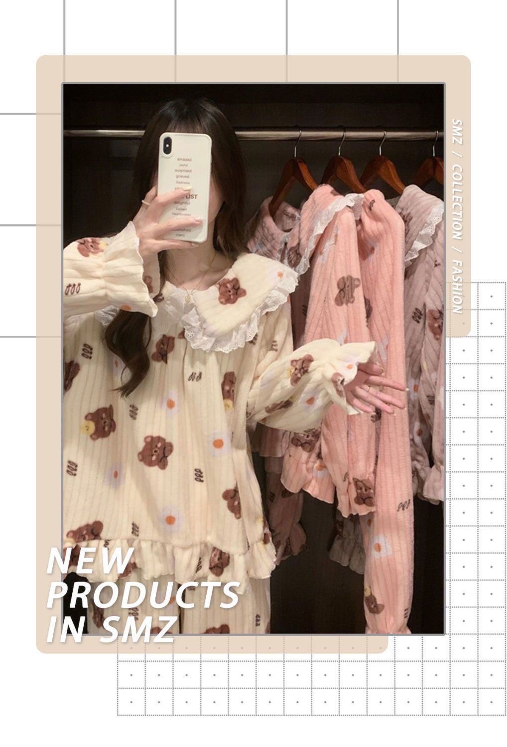 2025 가을, 겨울 산호 벨벳 잠옷 홈웨어 플란넬 대형 두꺼운 귀여운 패션 롱 가디건 여성용 세트스토어 가기