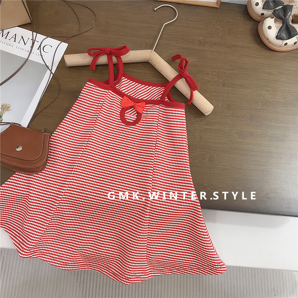 여자 어린이 여름 새로운 흰색과 빨간색 격자 무늬 끈 서스펜더 드레스 여름 아동 의류 휴가 스타일 스커트스토어 가기