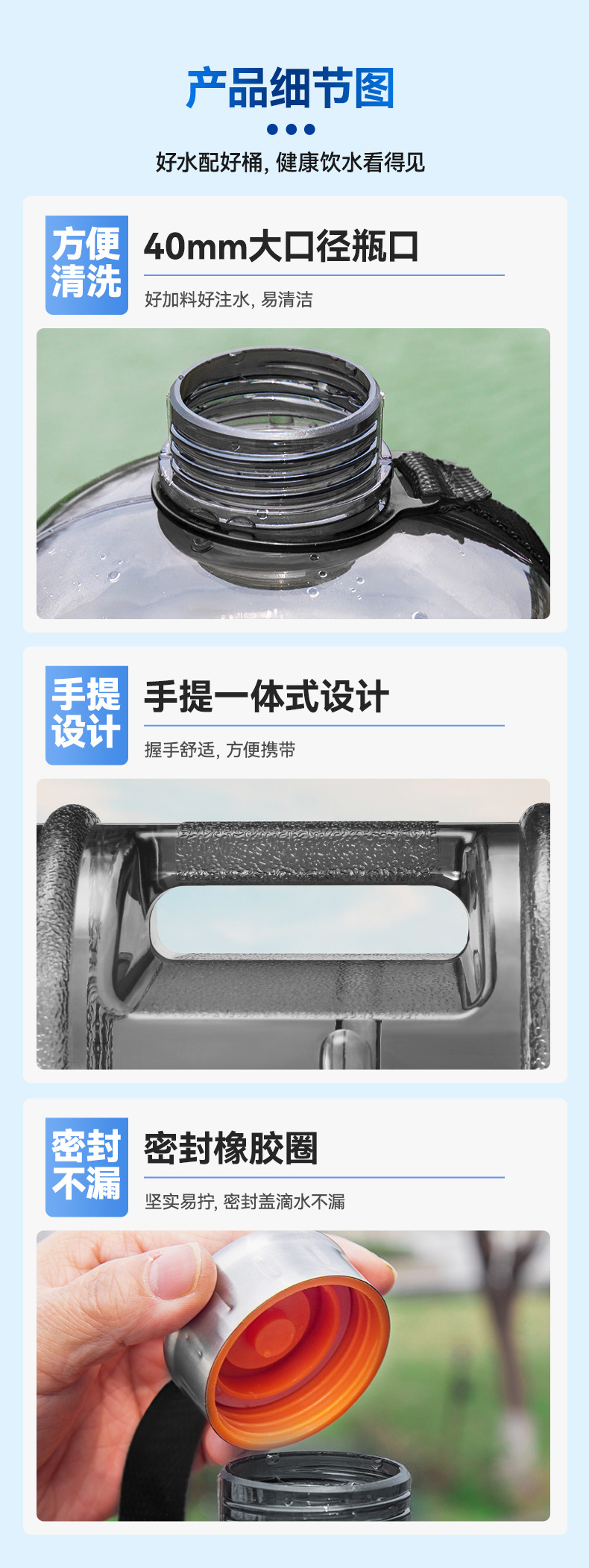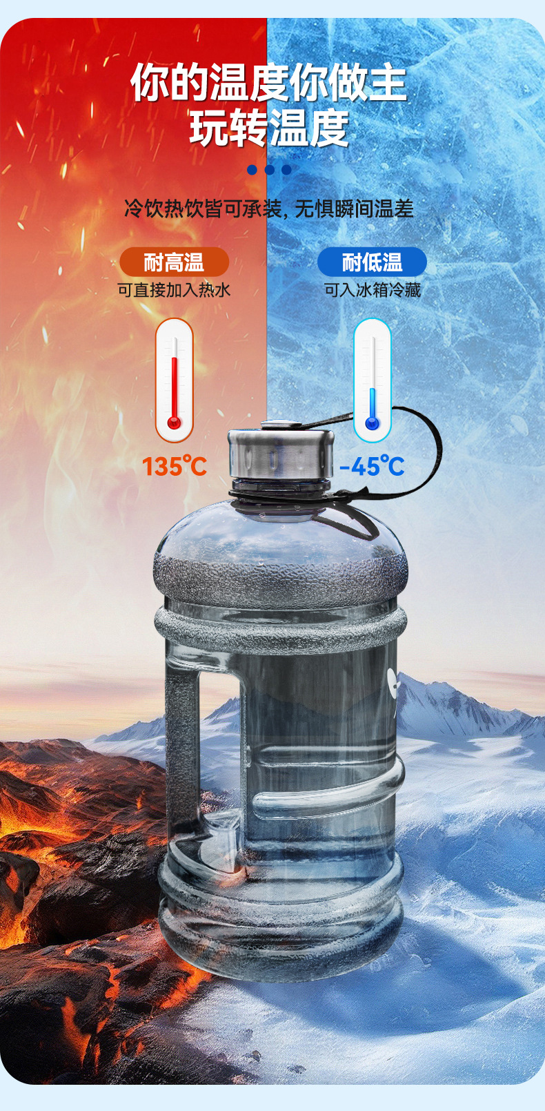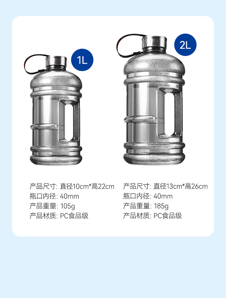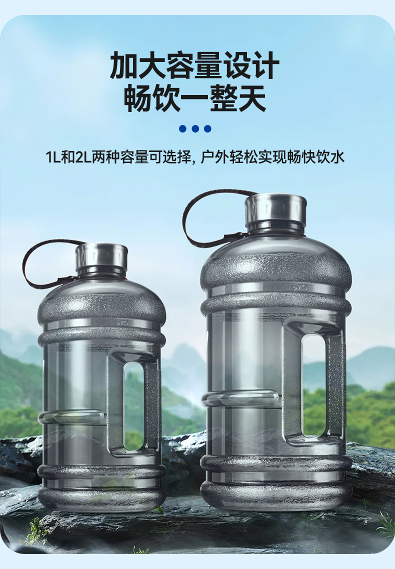 그라디언트 색상 고가 플라스틱 물컵 야외 하이킹 체육관 스포츠 물병 대용량 휴대용 톤 버킷