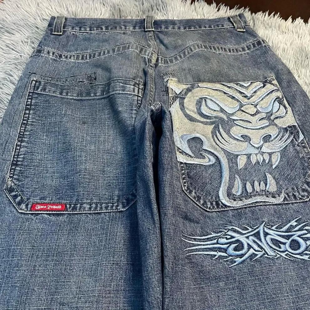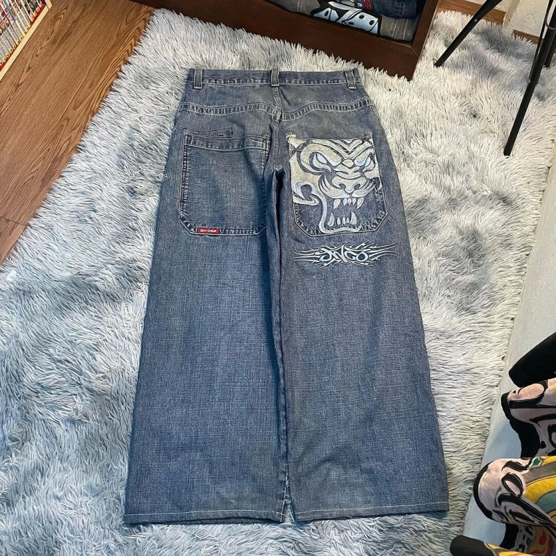 국경 간 전자 상거래 JNCO 프린트 루즈 청바지 남성 하라주쿠 힙합 Y2K 캐주얼 와이드 레그 청바지