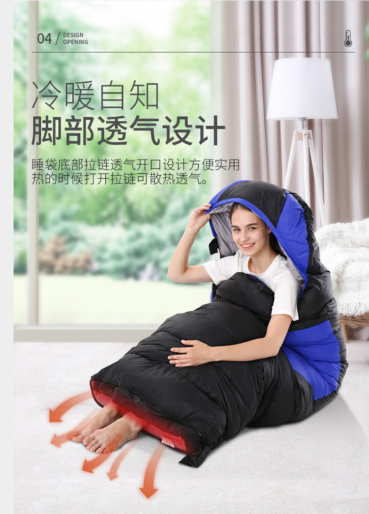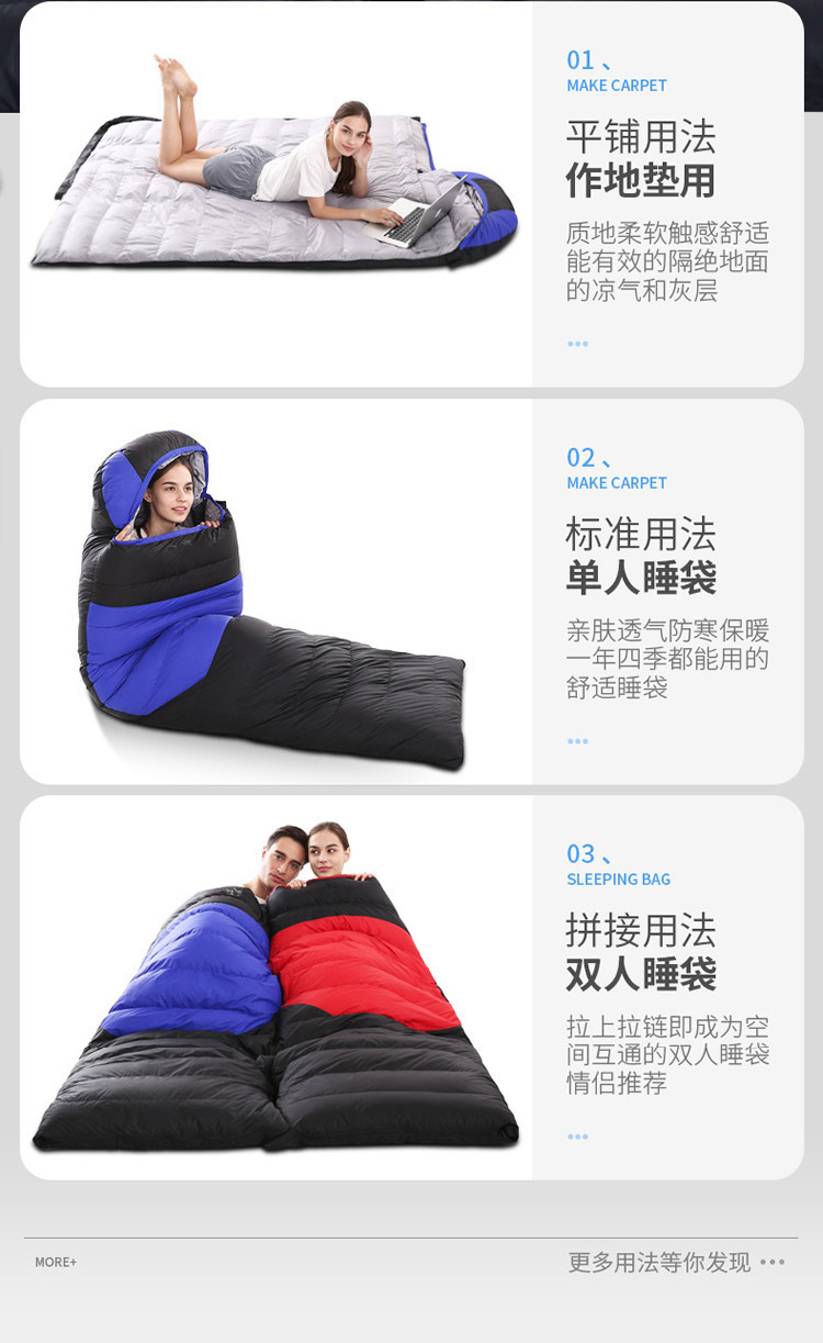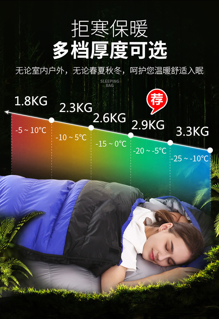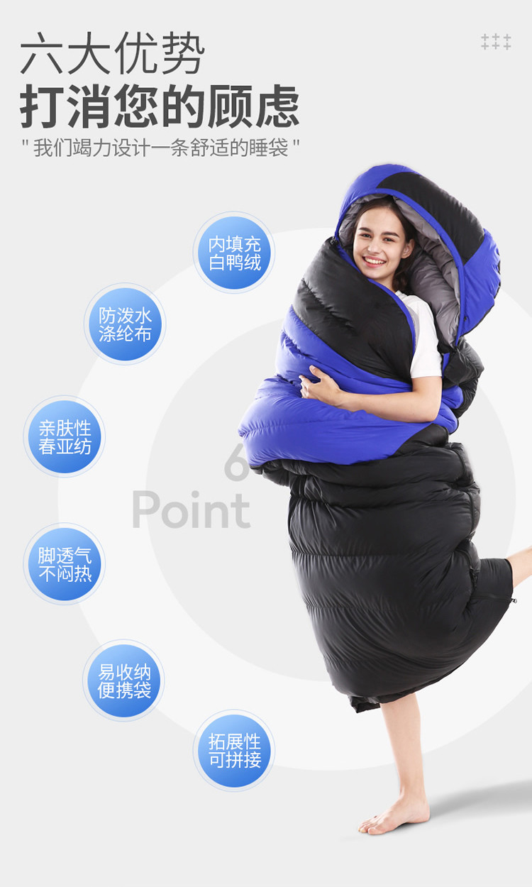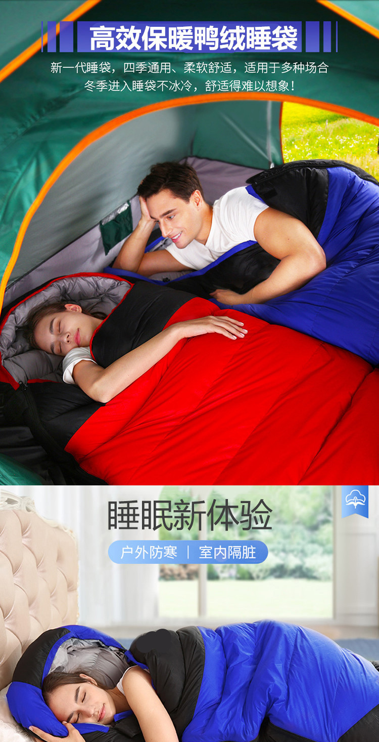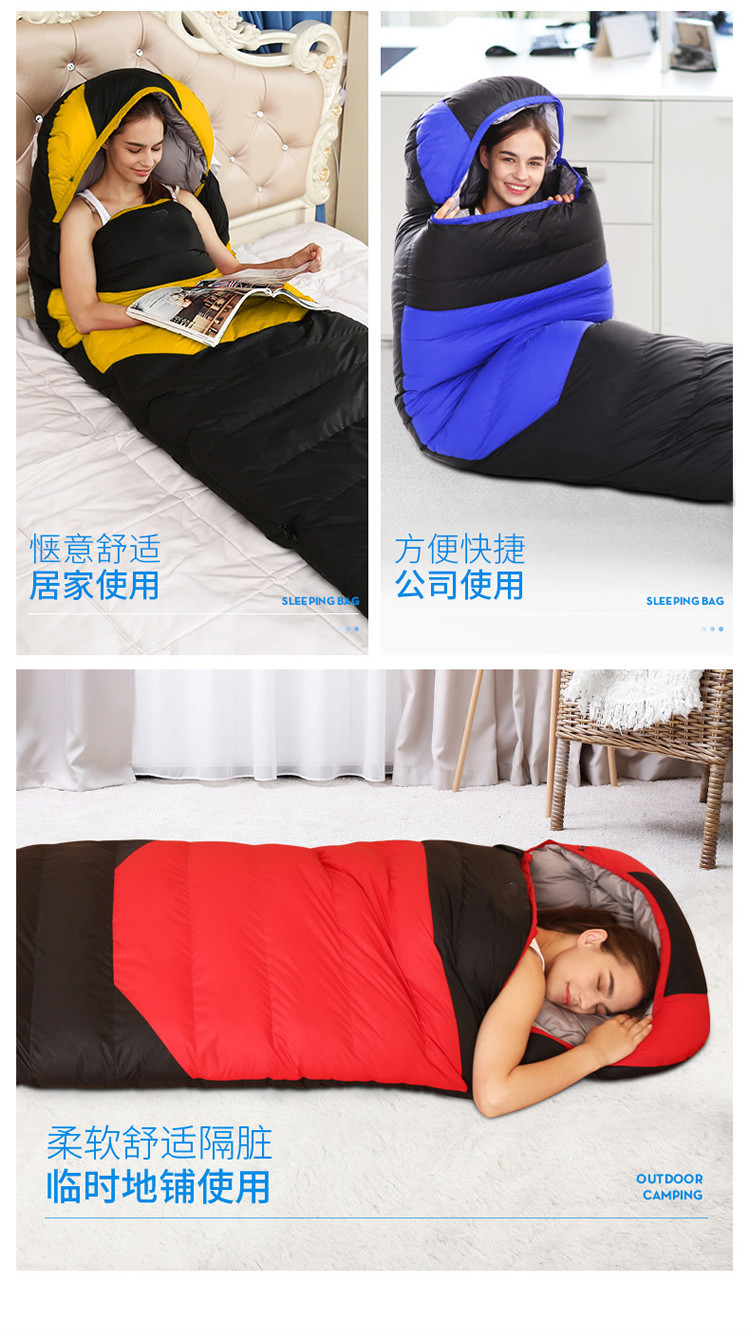 남성과 여성을 위한 다운 침낭, 야외 겨울, 마이너스 10도 및 20도, 성인용 두꺼운 따뜻한 캠핑 방한 침낭스토어 가기