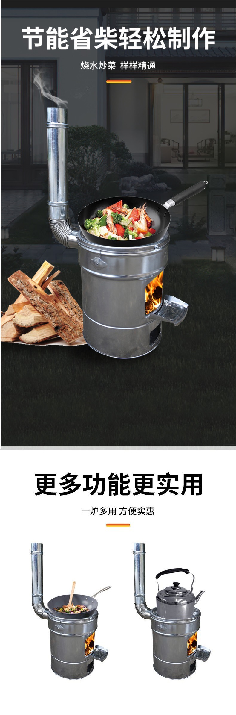 새로운 스테인레스 스틸 장작 스토브 가정용 스튜 냄비 장작 스토브 야외 휴대용 모바일 장작 스토브 농촌 장작 스토브