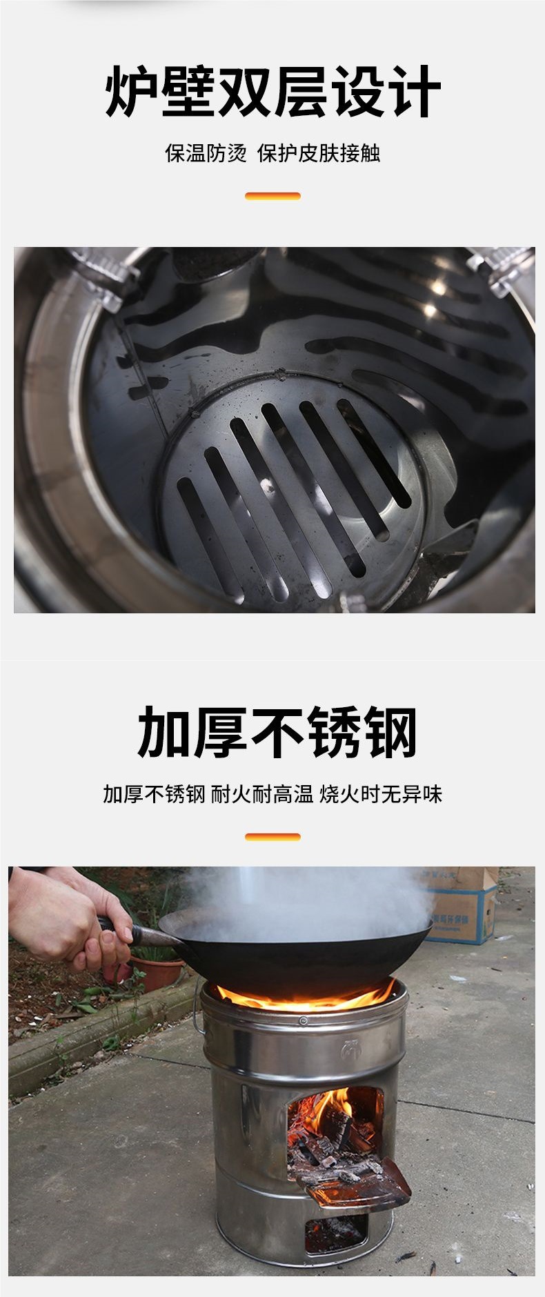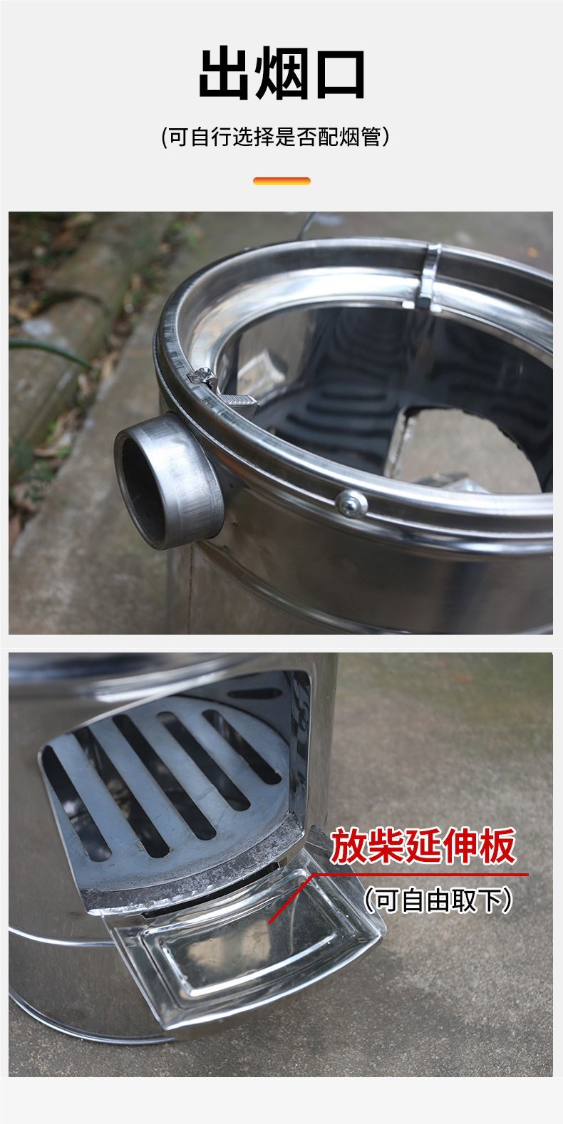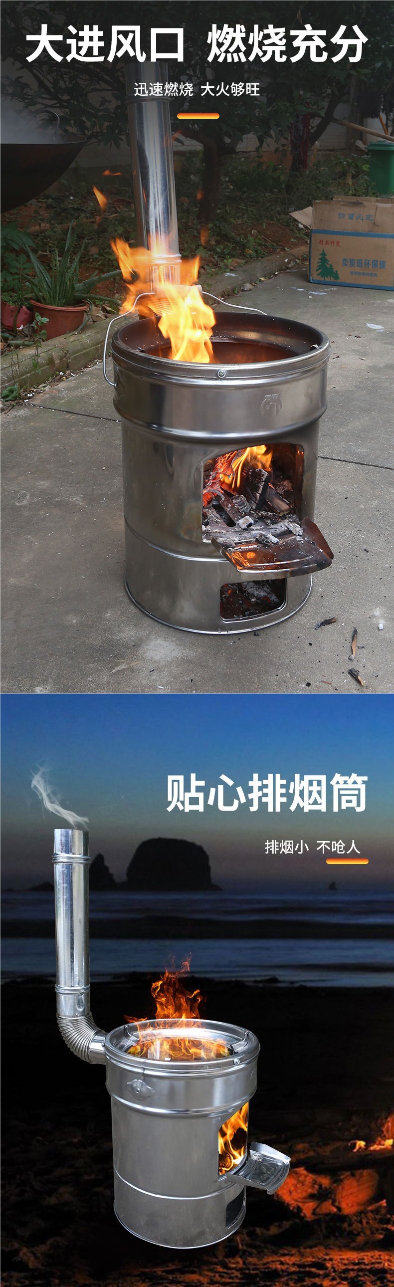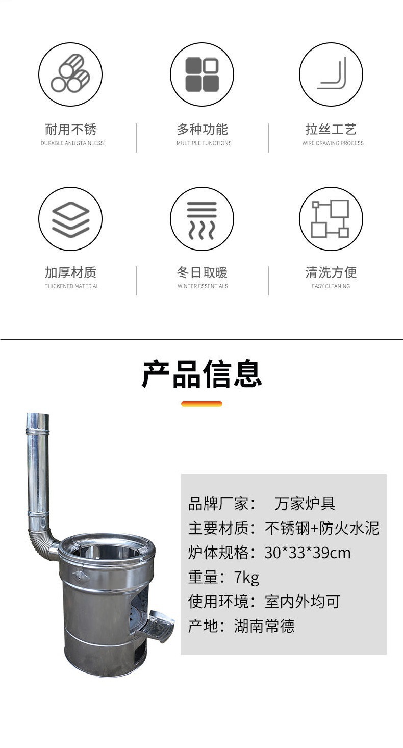 새로운 스테인레스 스틸 장작 스토브 가정용 스튜 냄비 장작 스토브 야외 휴대용 모바일 장작 스토브 농촌 장작 스토브스토어 가기