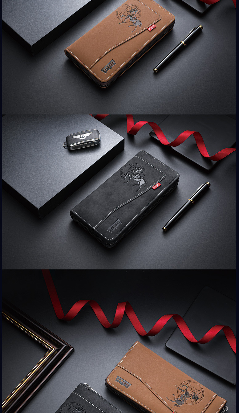 새로운 미친 말 가죽 남성 지갑 유럽과 미국의 복고풍 스타일 PU 지퍼 가방 패션 짧은 카드 가방 변경 가방 도매
