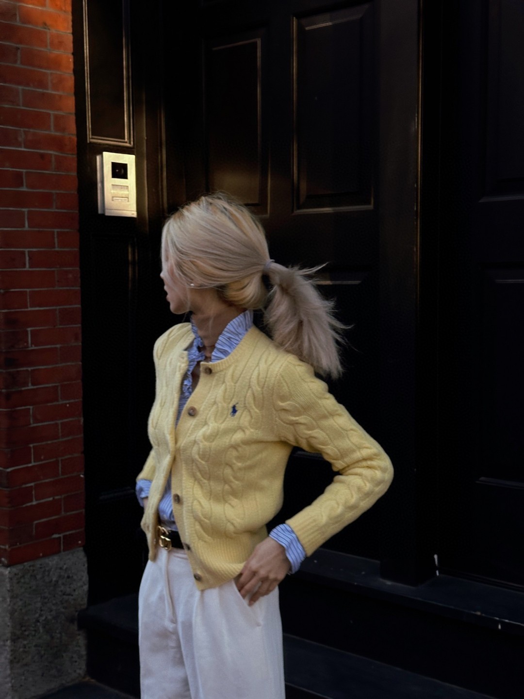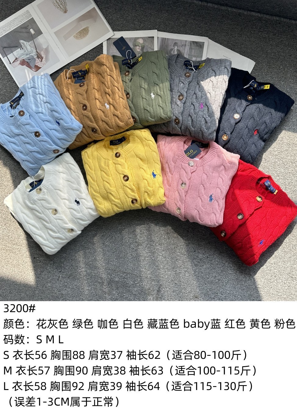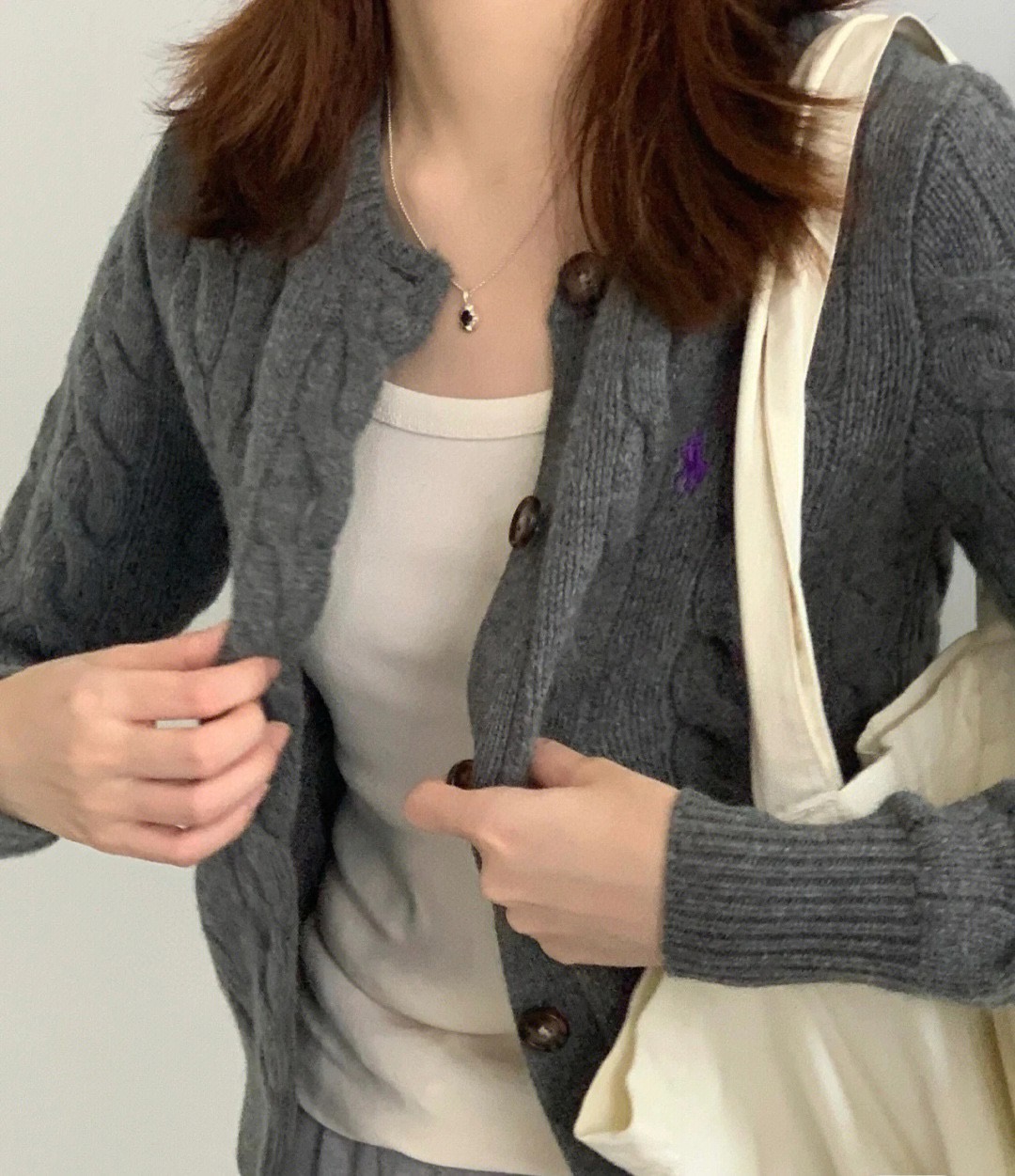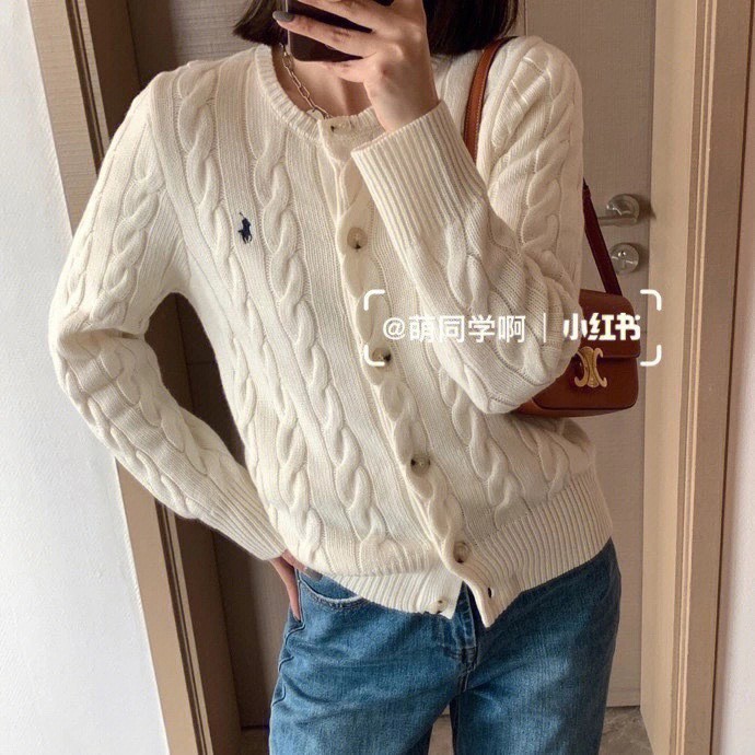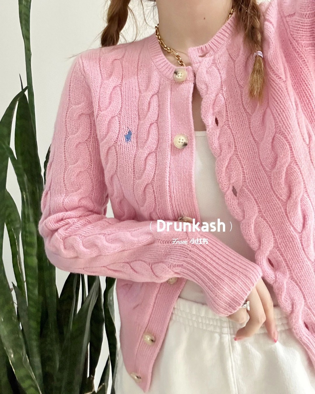 스캔 가능 RL~2025 가을 겨울 러브 포니 로고 트위스트 자수 울 라운드 넥 심플 니트 가디건 스웨터스토어 가기
