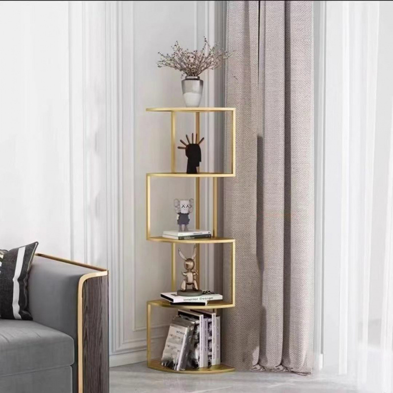 가벼운 고급 창조적 인 수직 코너 책장 간단한 가정용 철제 선반 바닥 사무실 다층 책장 보관