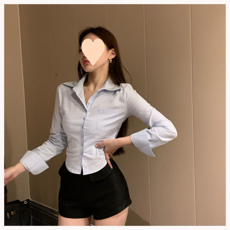 가을 순수한 욕망 핫 소녀 스타일 슬림 허리 슬리밍 짧은 섹시한 흰색 셔츠 여성 긴팔 프론트 데스크 작업복스토어 가기