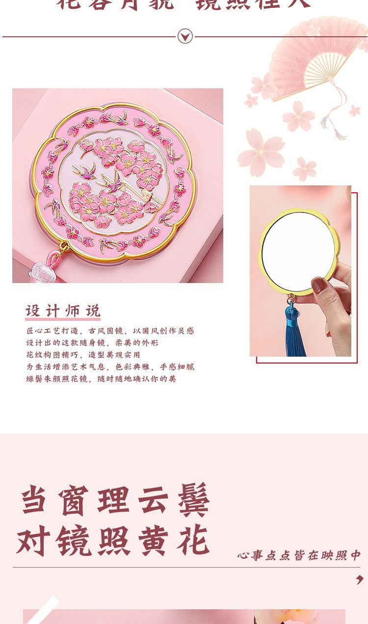 [무료 배송] 중국 스타일 거울, 고급스러운 메이크업 휴대용 거울, 합금 낙하 방지 공주 소녀, 절묘한 선물 선택