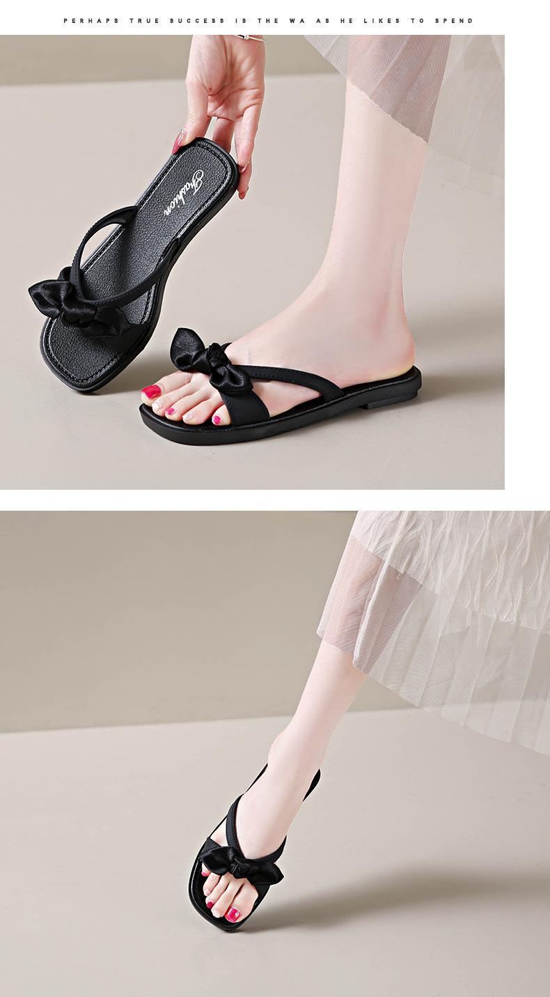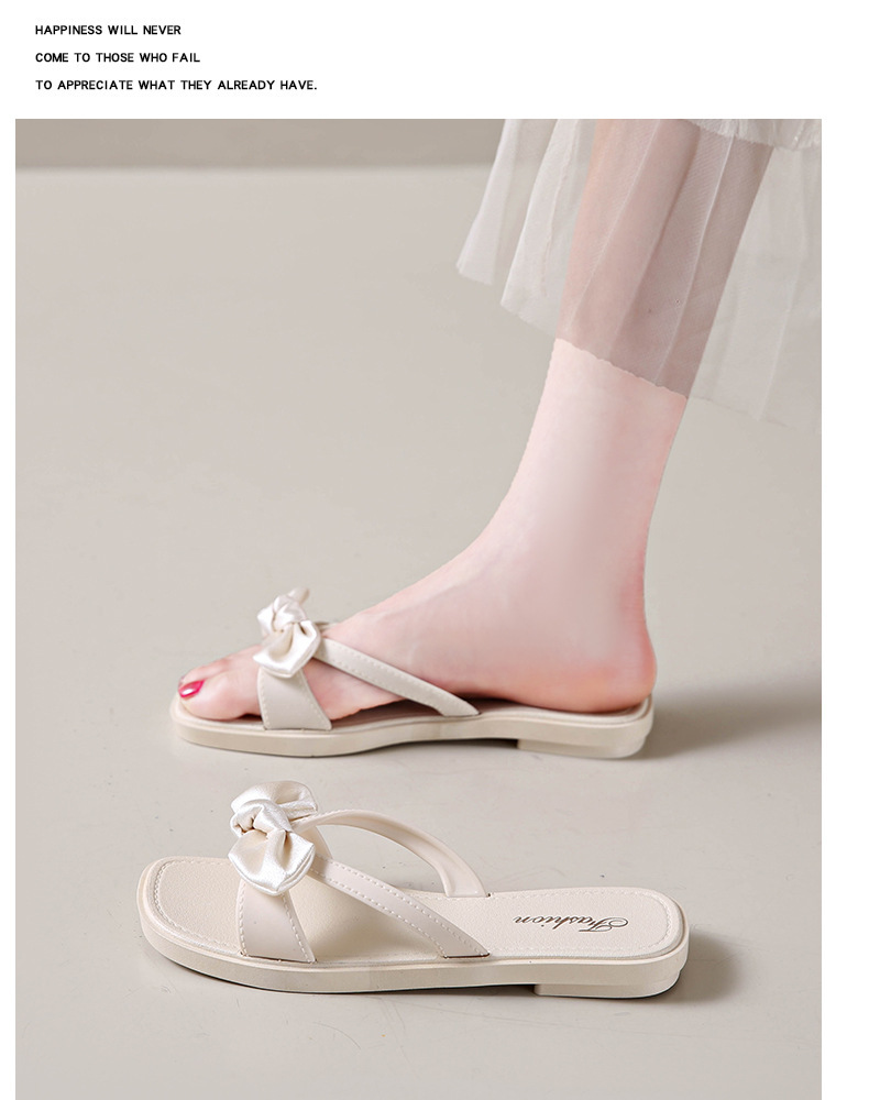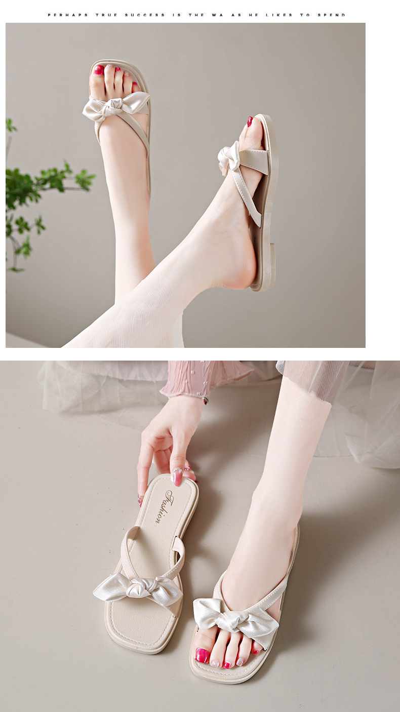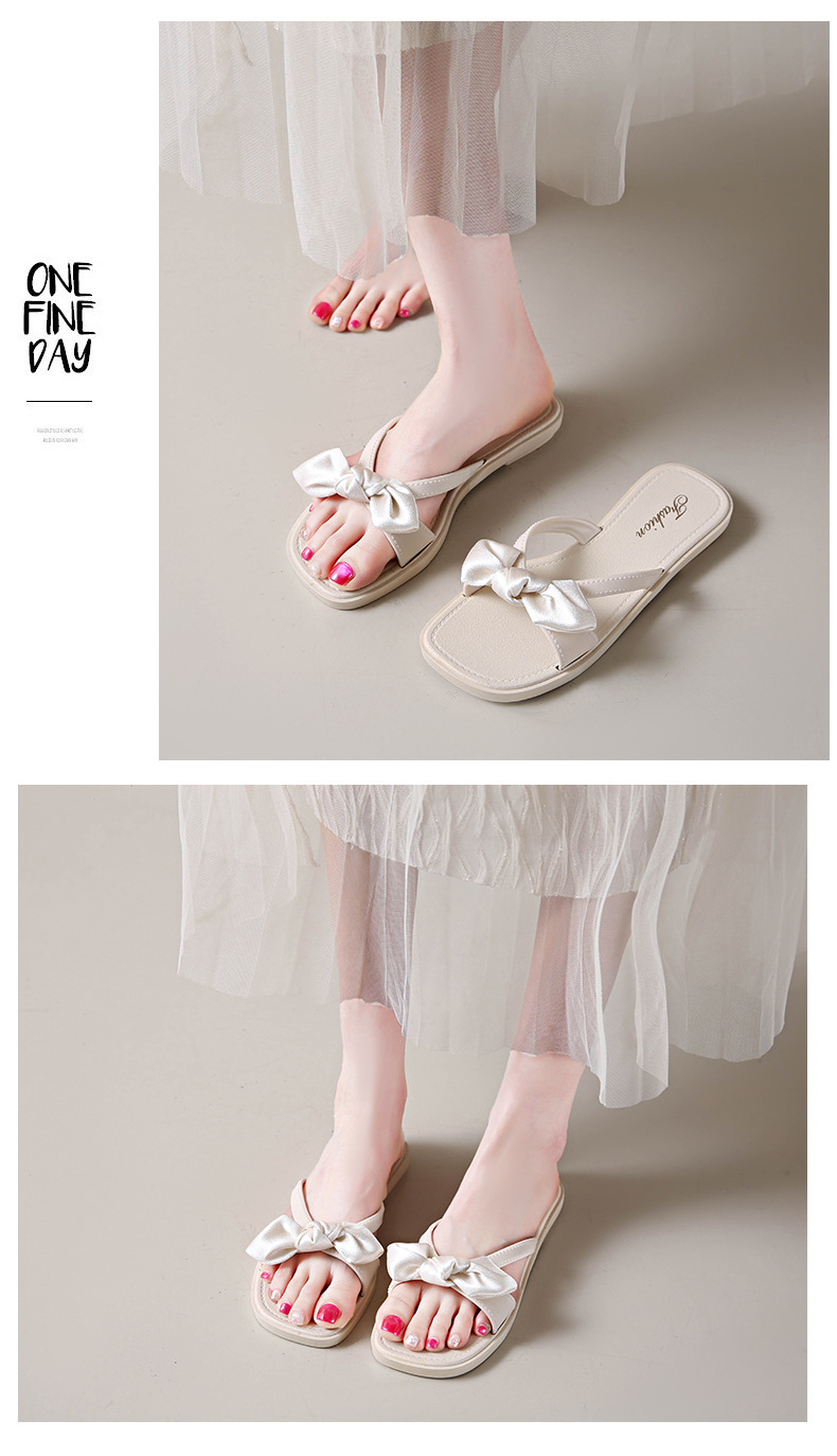 여성을위한 Bowknot 겉옷 슬리퍼 새로운 여름 다목적 플랫 미끄럼 방지 여학생 패션 부드러운 바닥 비치 샌들스토어 가기