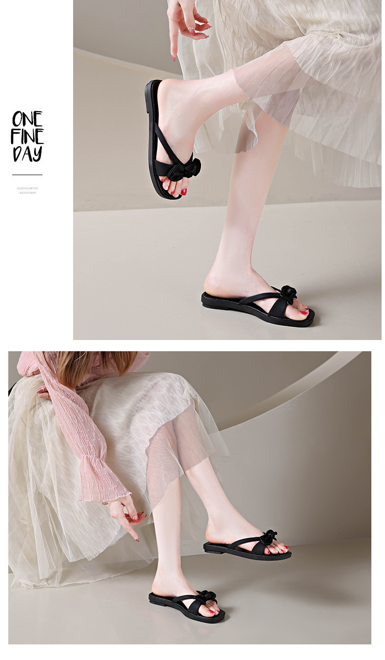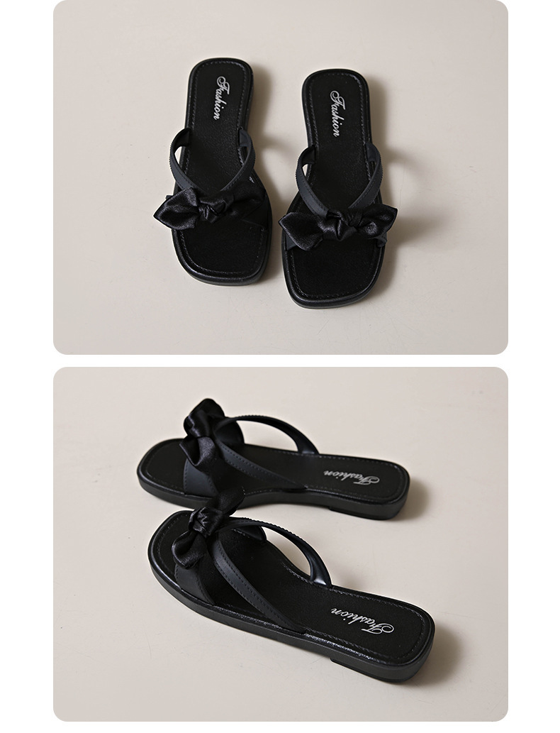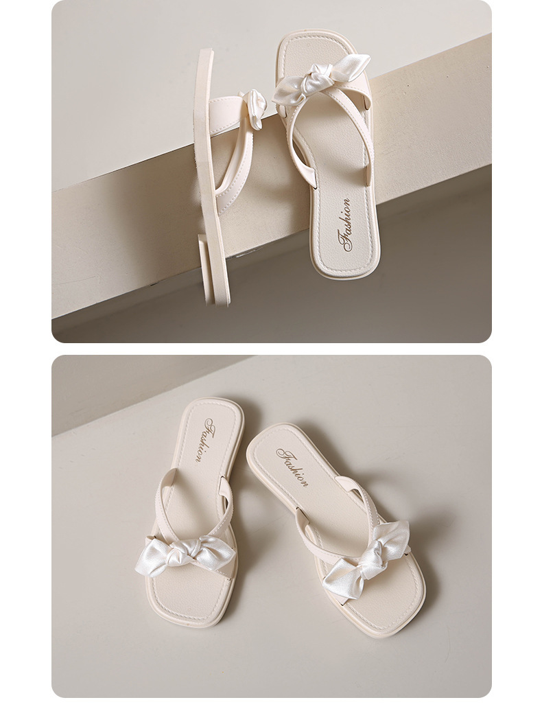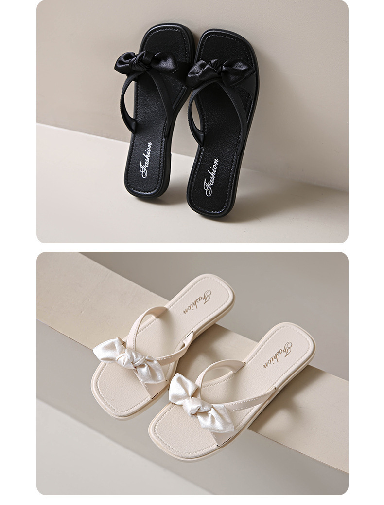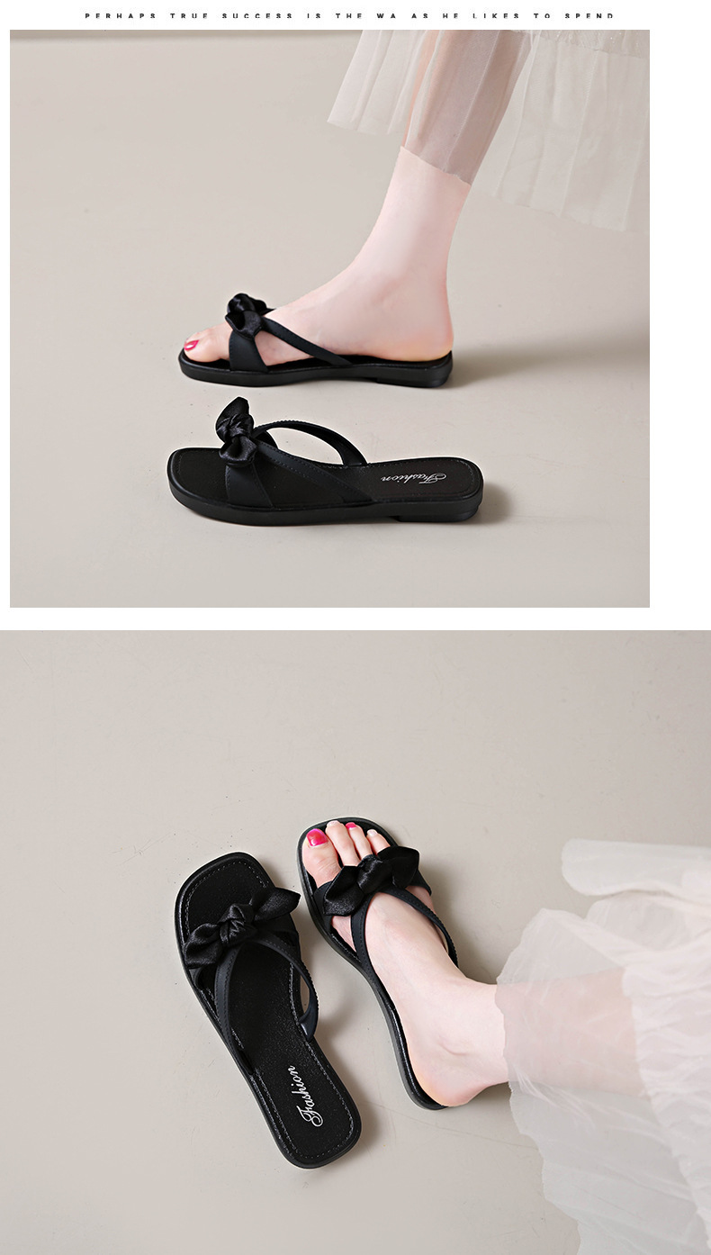 여성을위한 Bowknot 겉옷 슬리퍼 새로운 여름 다목적 플랫 미끄럼 방지 여학생 패션 부드러운 바닥 비치 샌들스토어 가기