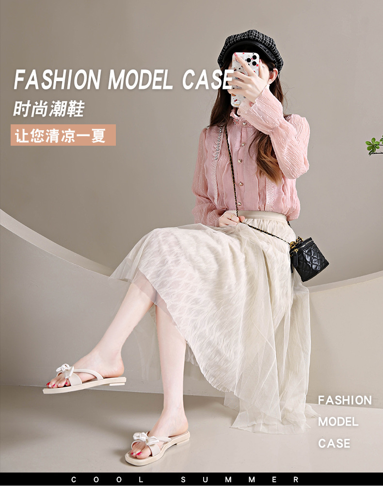여성을위한 Bowknot 겉옷 슬리퍼 새로운 여름 다목적 플랫 미끄럼 방지 여학생 패션 부드러운 바닥 비치 샌들