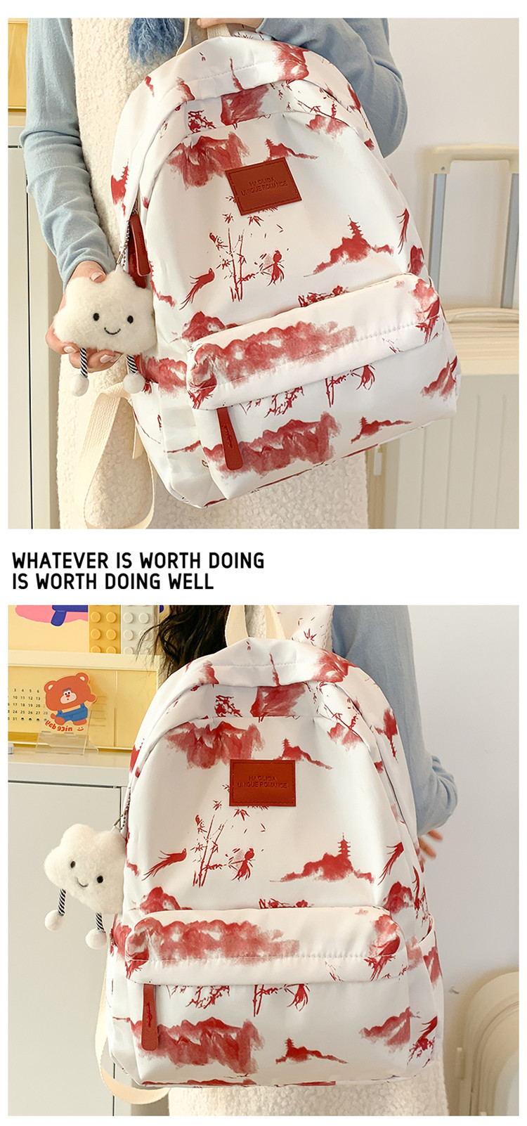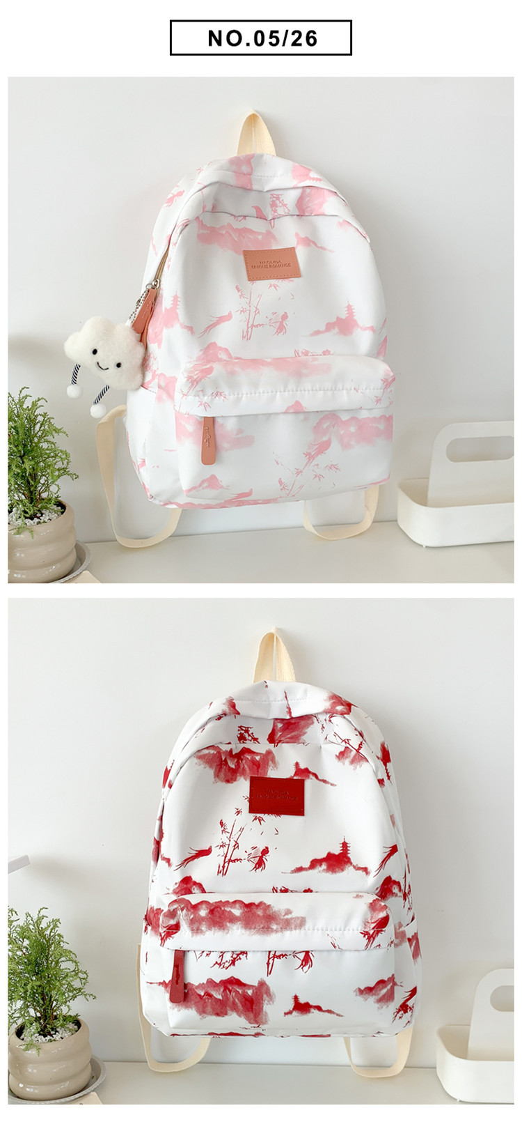 Schoolbag 여성 대용량 배낭 2025 새로운 대학 스타일 일본식 여성 대학생 캐주얼 간단한 타이 염색 배낭스토어 가기
