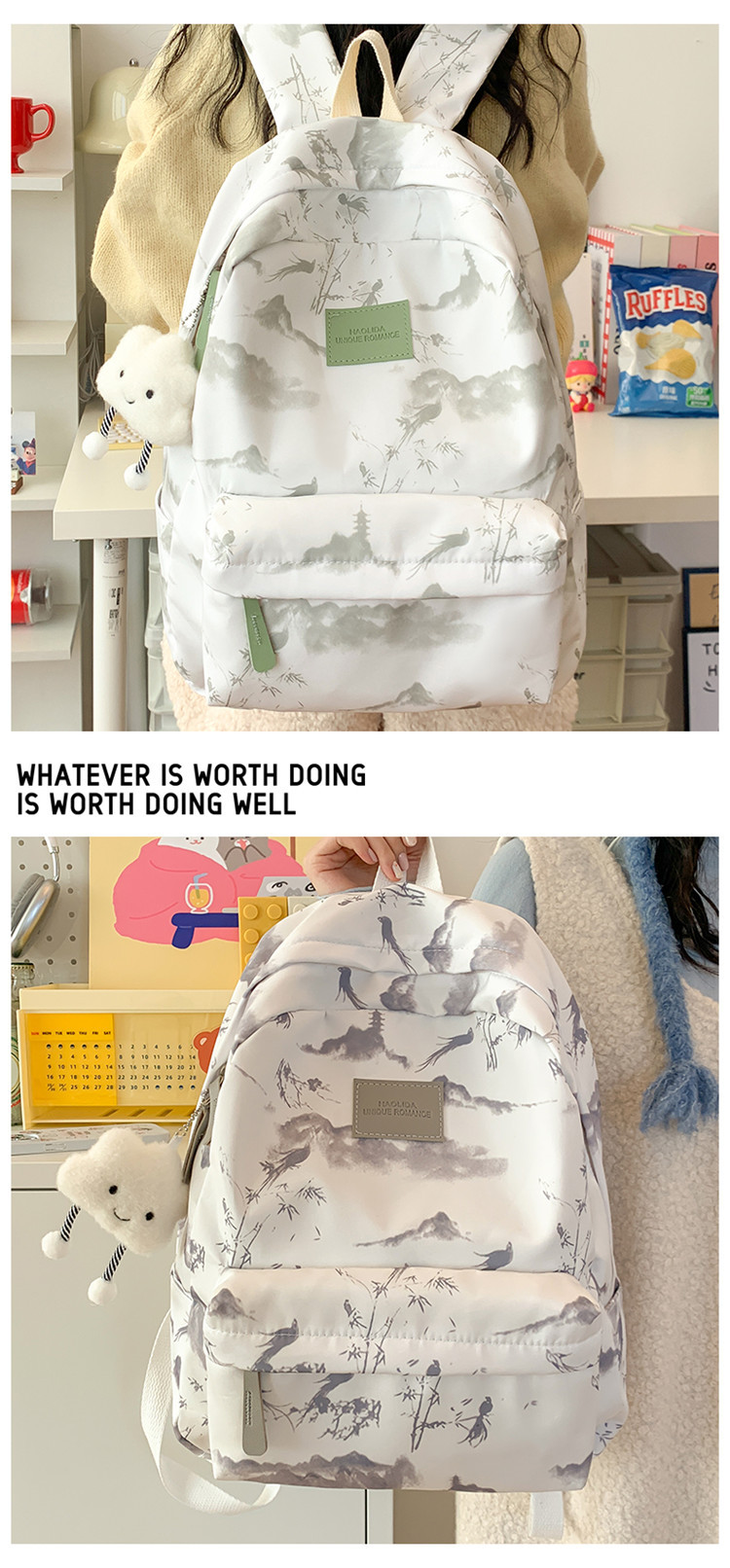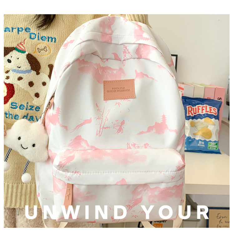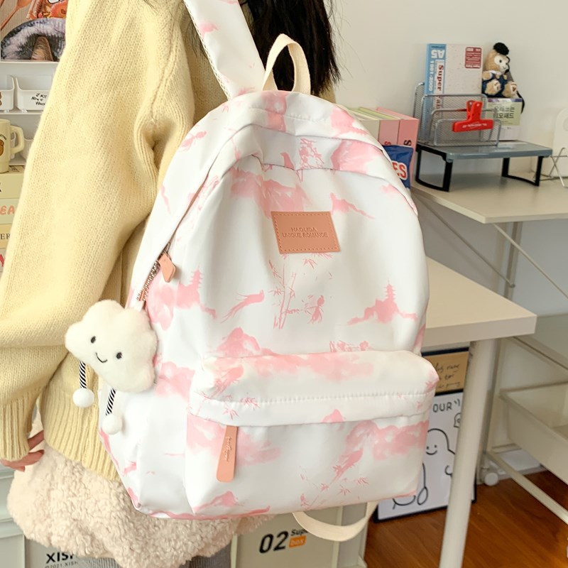 Schoolbag 여성 대용량 배낭 2025 새로운 대학 스타일 일본식 여성 대학생 캐주얼 간단한 타이 염색 배낭
