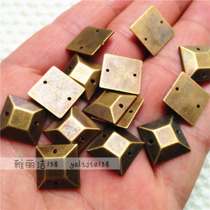 청동 손으로 꿰맨 다이아몬드, 아크릴 전기 도금 이중 구멍 플랫 다이아몬드, 복고풍 DIY 의류 및 가방 액세서리, 루즈 비즈스토어 가기