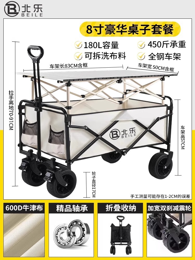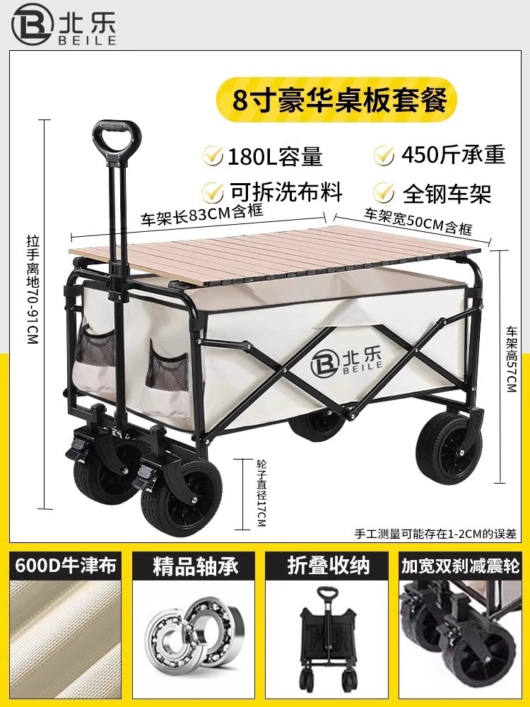 • 8inch 럭셔리 모델 - 카키 + 오프화이트 테이블 (직경 17cm 충격 흡수 휠 / 노동력 절약 / 더블 브레이크)
