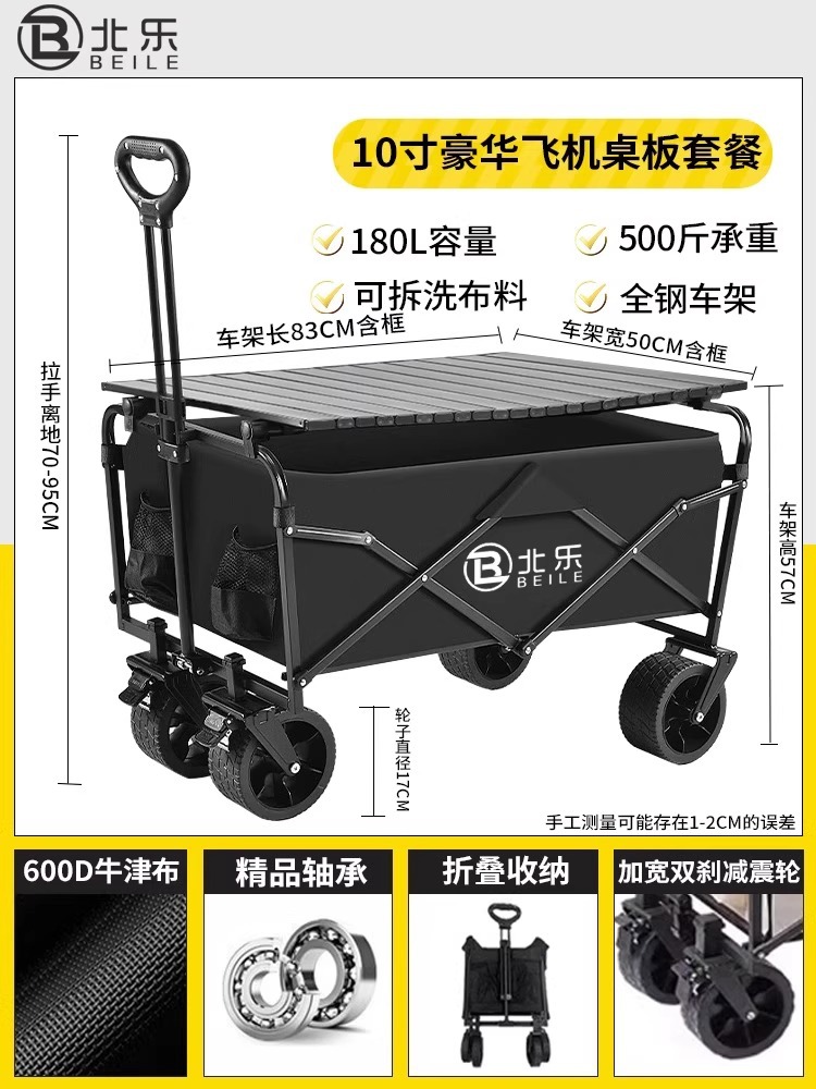 • 10inch 항공기 바퀴 - 검정색 + 8inch 테이블 보드(직경 17cm 충격 흡수 바퀴/노동 절약/이중 브레이크)