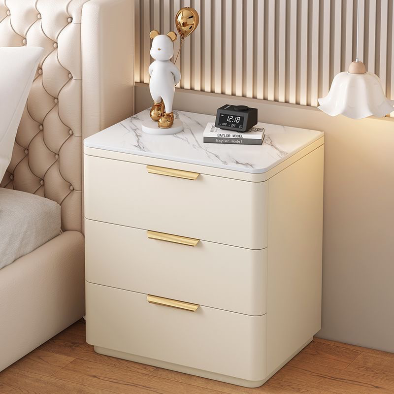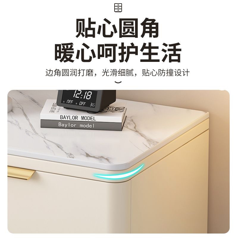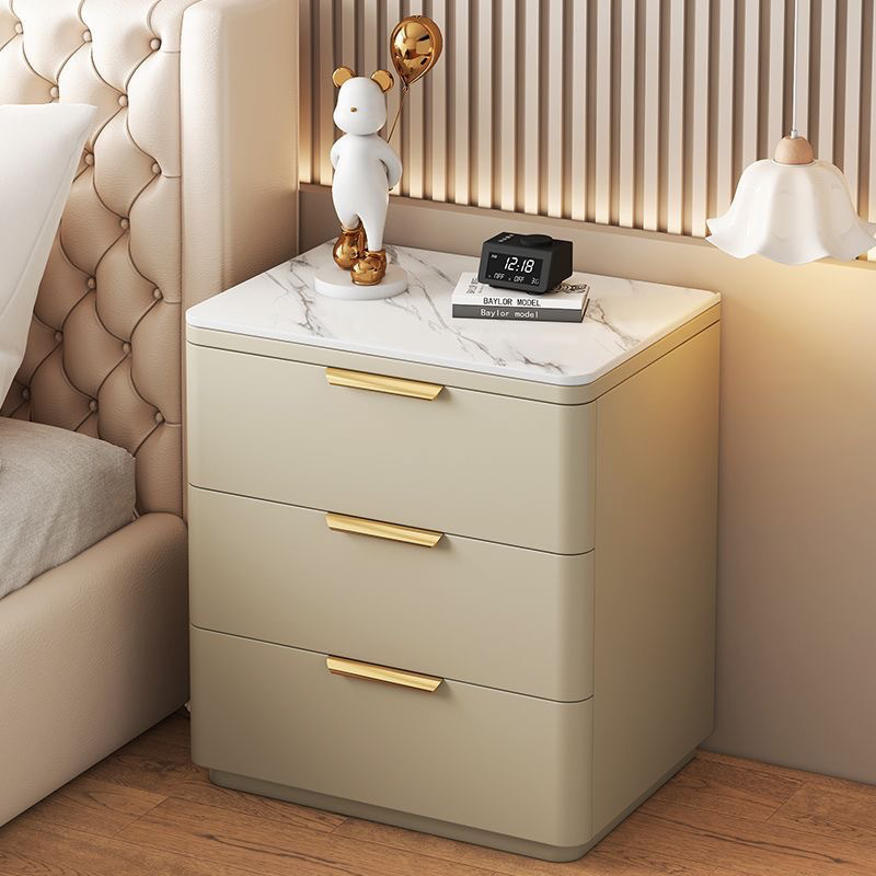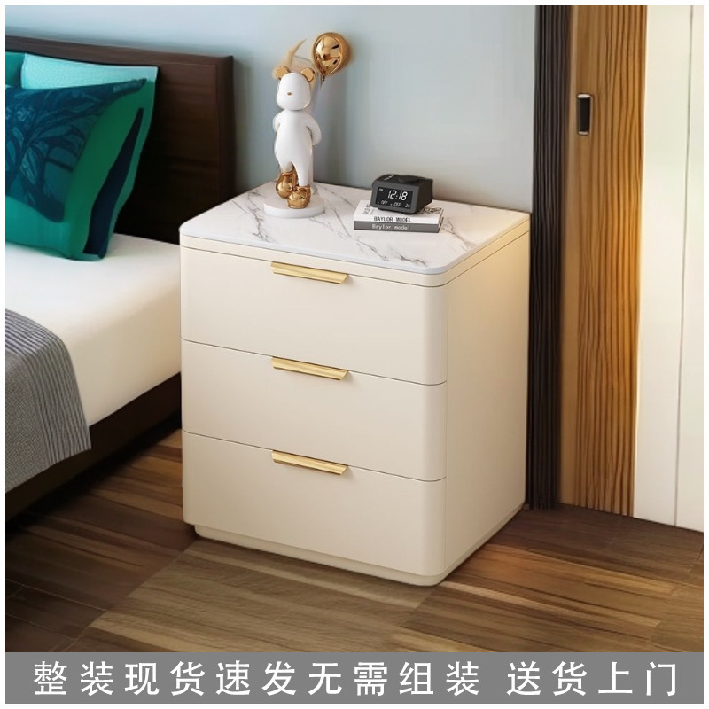 단단한 나무 극세사 가죽 슬레이트 침대 옆 테이블, 간단하고 현대적인 3층 바닥 스토리지 캐비닛, 조립이 필요 없음스토어 가기