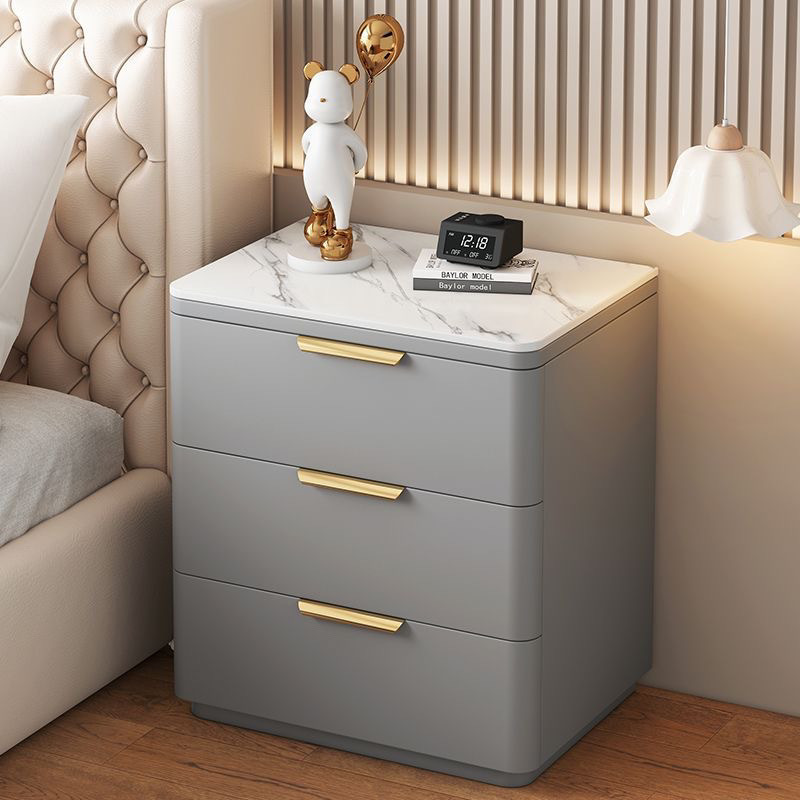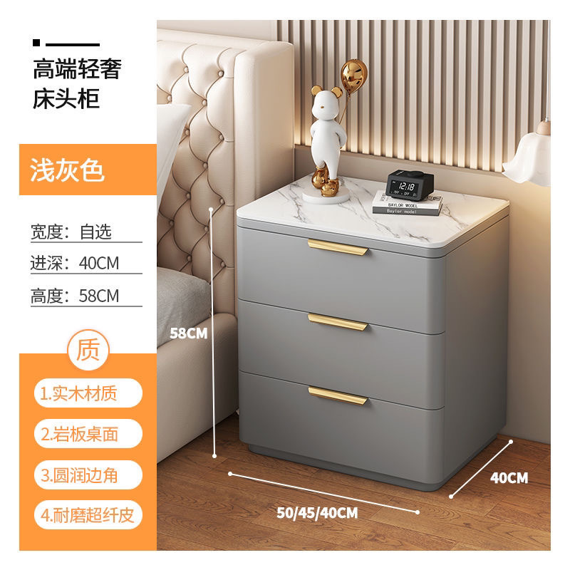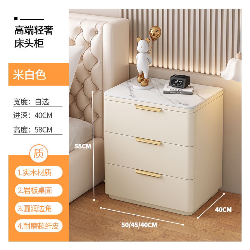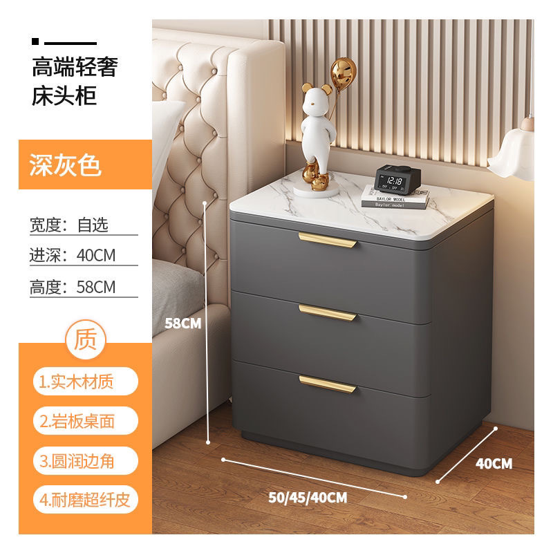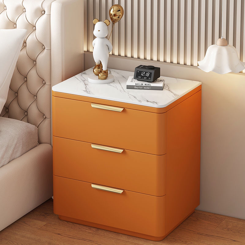 단단한 나무 극세사 가죽 슬레이트 침대 옆 테이블, 간단하고 현대적인 3층 바닥 스토리지 캐비닛, 조립이 필요 없음