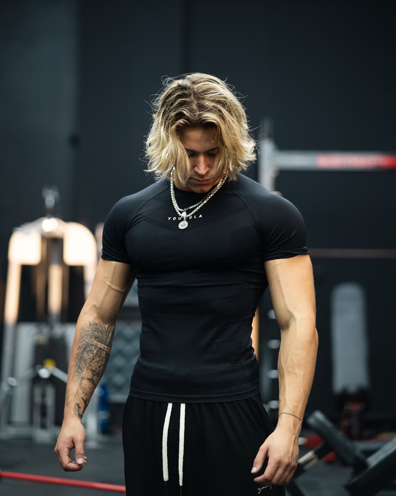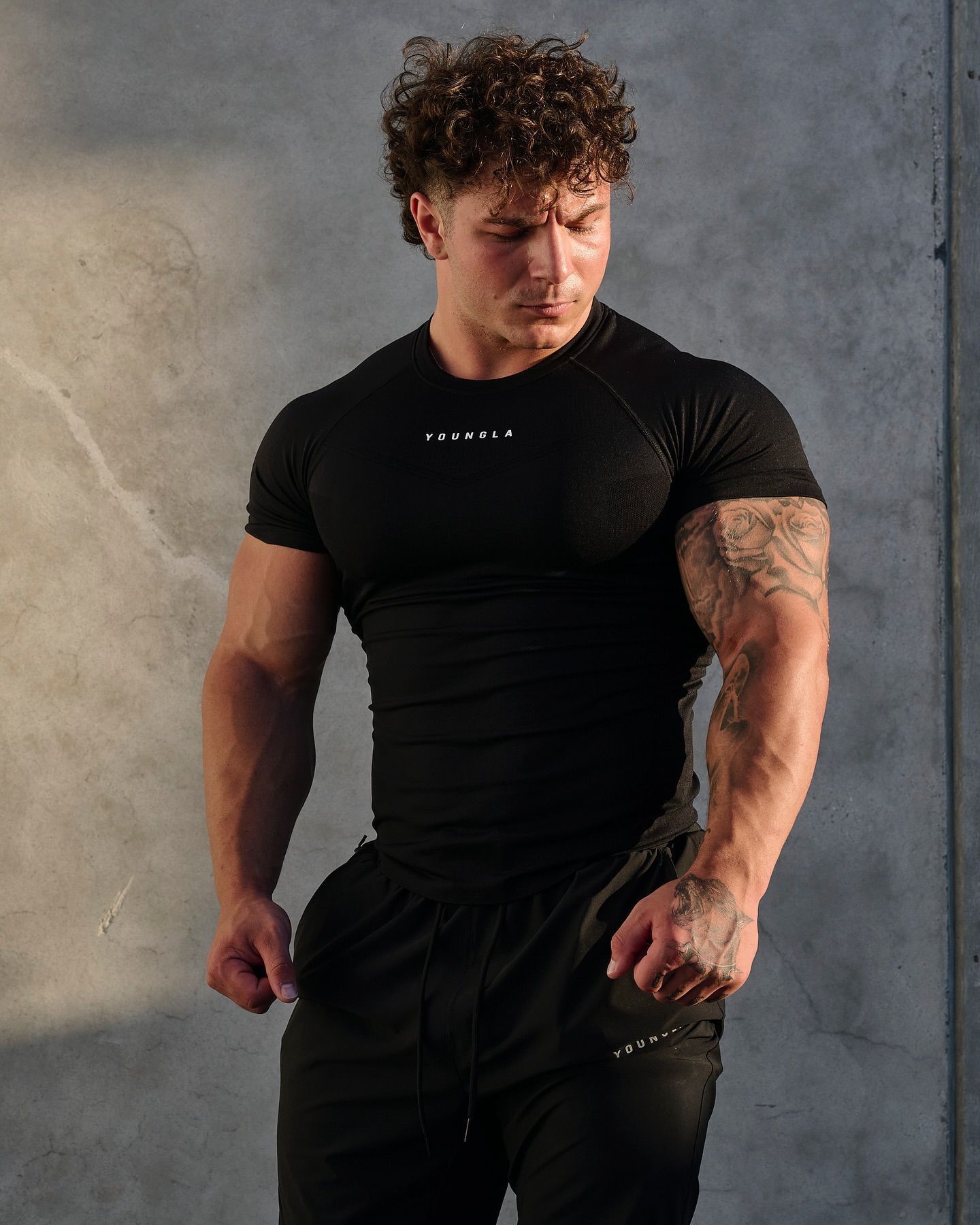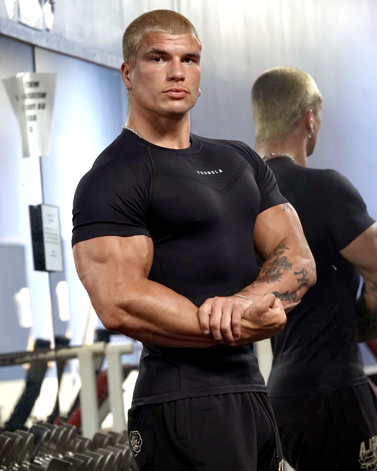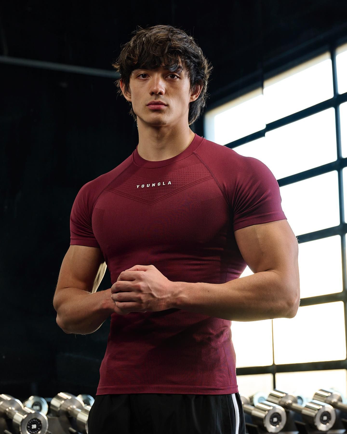 YOUNGLA 남자 티셔츠 스포츠 피트니스 빠른 건조 통기성 스트레치 피트니스 의류 조깅 슬림 러닝 농구 의류스토어 가기