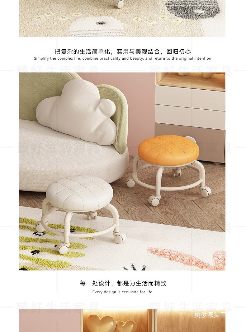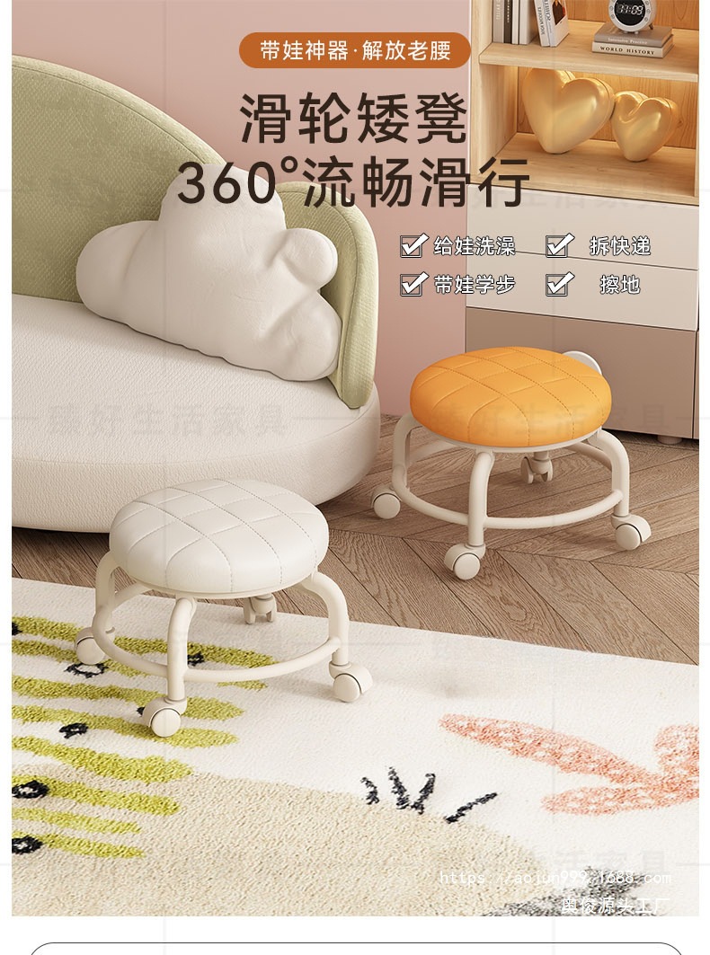 유아용 범용 휠이 달린 낮은 의자, 어린이 유아용 의자, 다기능 페디큐어 및 신발 교환 의자, 원형 의자, 부드러운 좌석