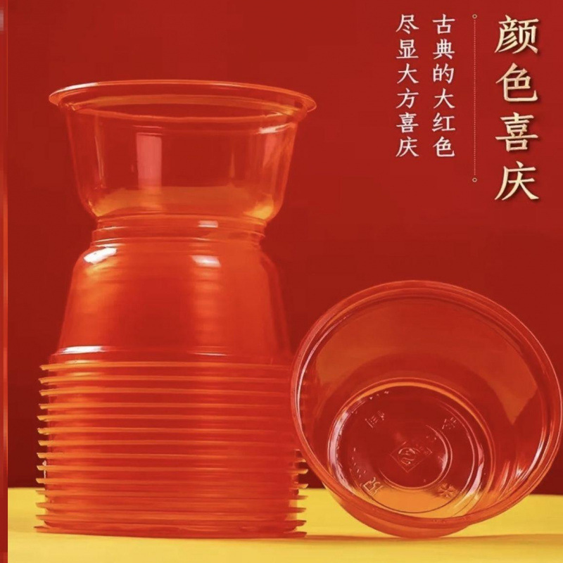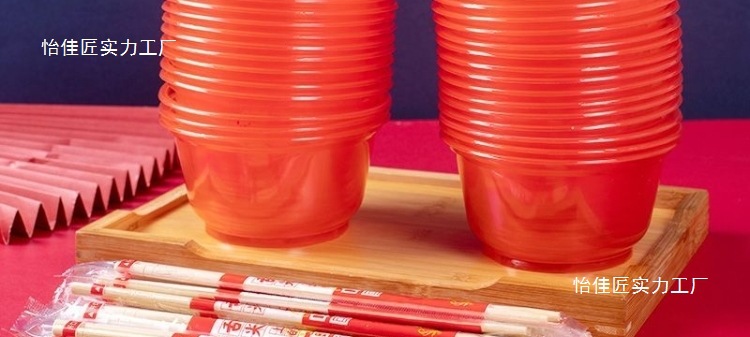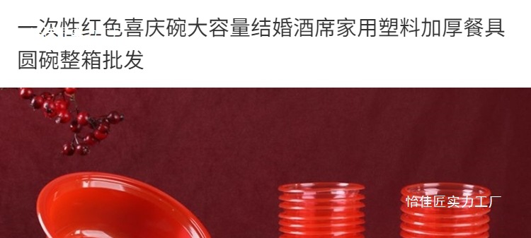 일회용 빨간색 축제 그릇 대용량 결혼식 연회 가정용 플라스틱 두꺼운 식기 둥근 그릇 전체 상자