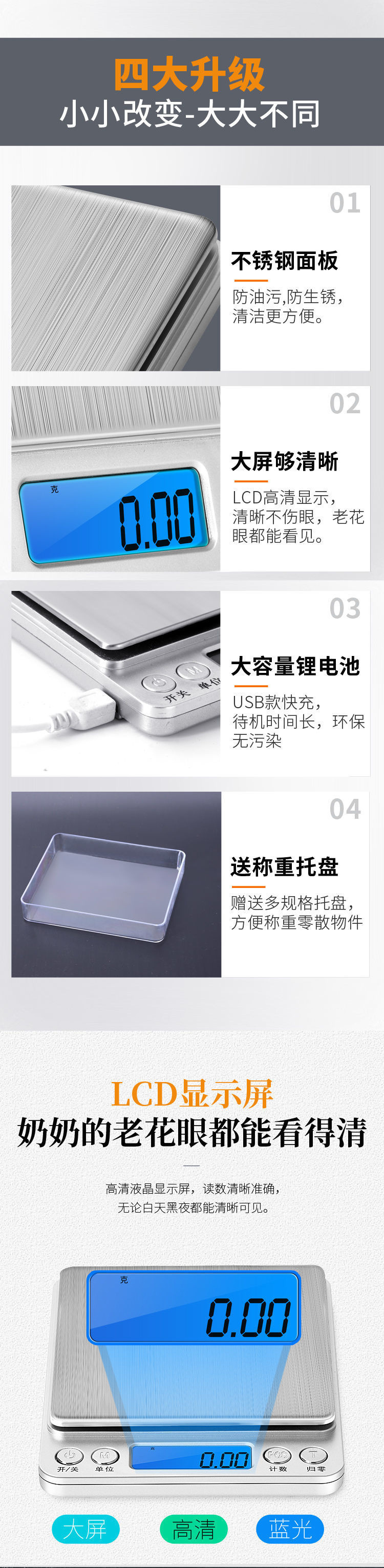 • 충전식 버전 500g/0.01g 표준 버전⚑⚑