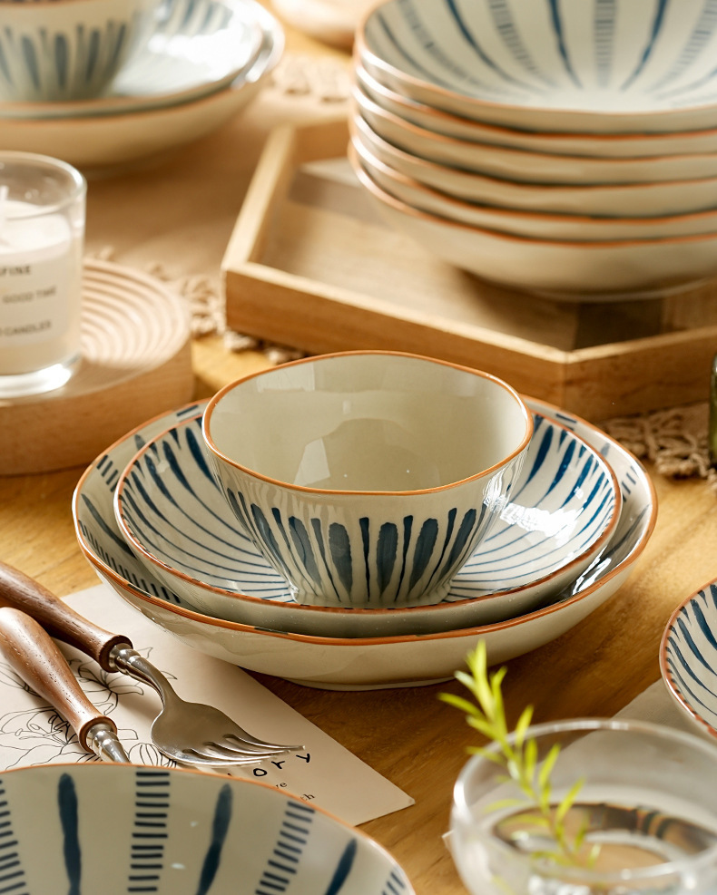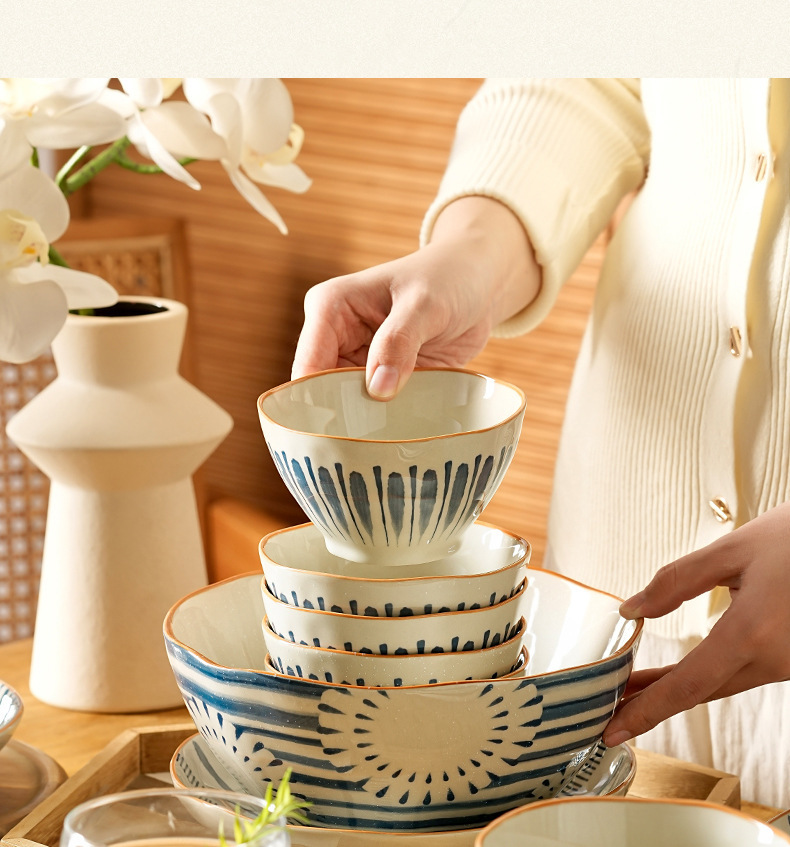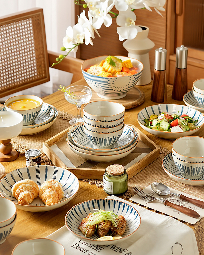새로운 스타일 세라믹 접시 가정용 접시 깊은 접시 수프 그릇 큰 국수 그릇 스튜 보울 유약 컬러 고온 방지 식기스토어 가기
