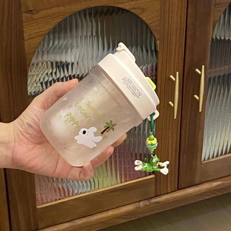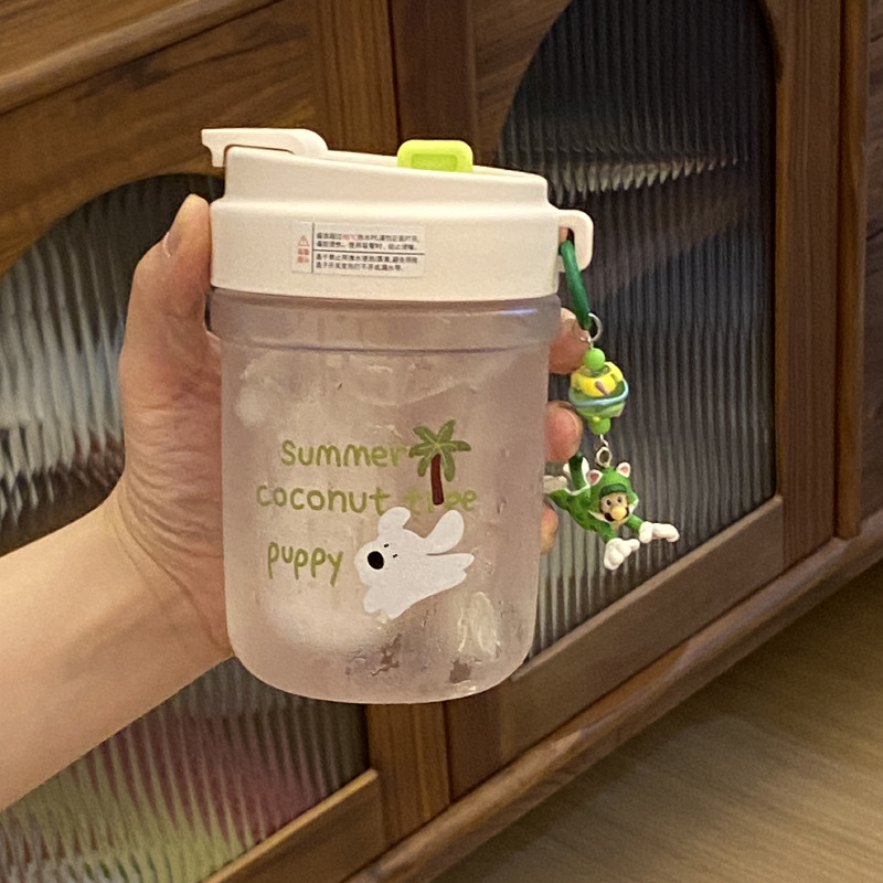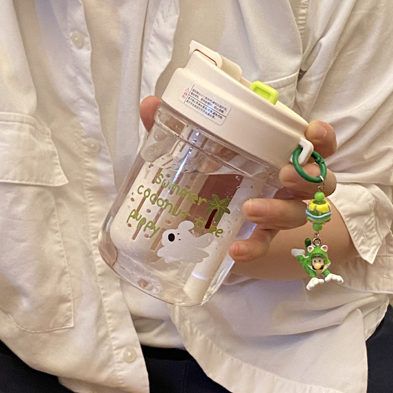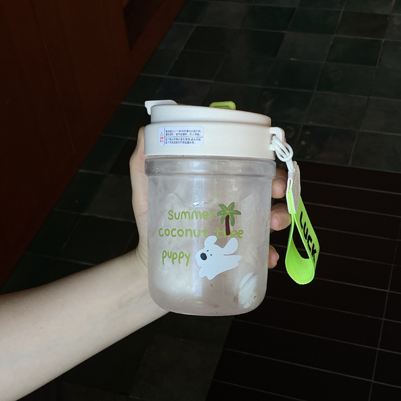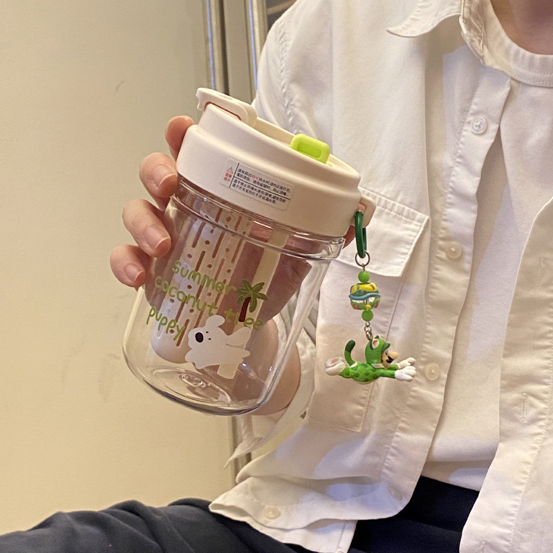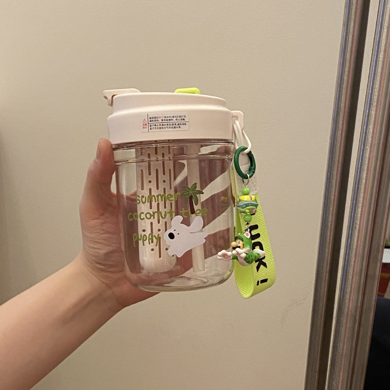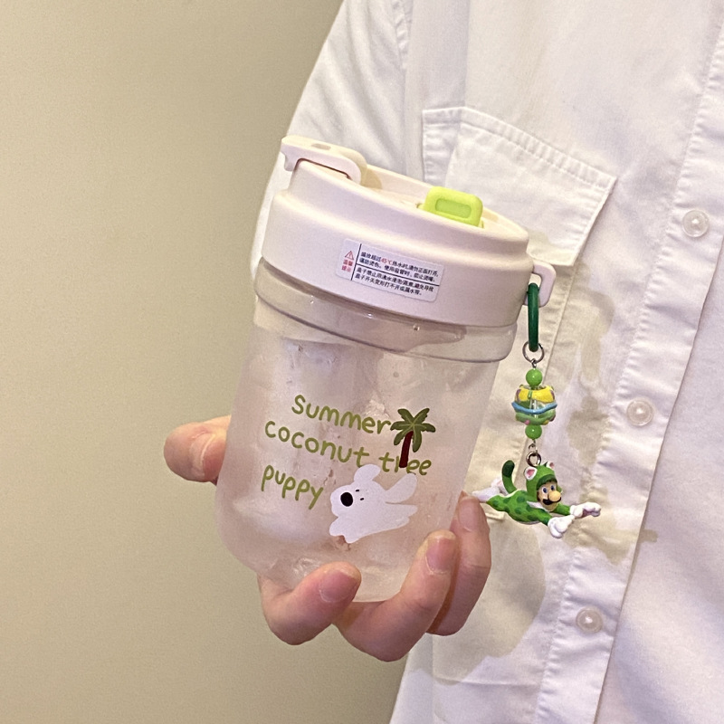 여름 코코넛 강아지 밀봉 밀짚 컵 플라스틱 컵 고온 방지 및 무취 Tritan 차 물 분리스토어 가기