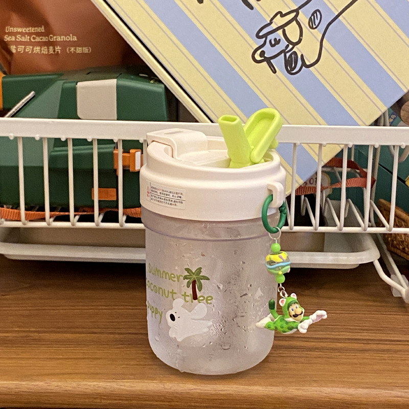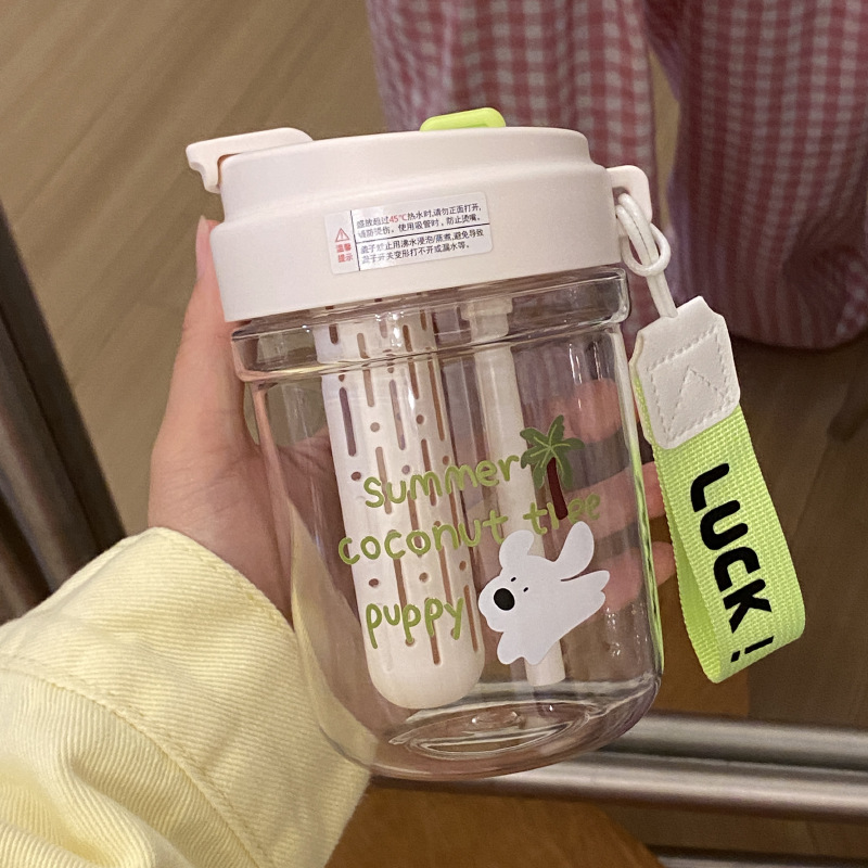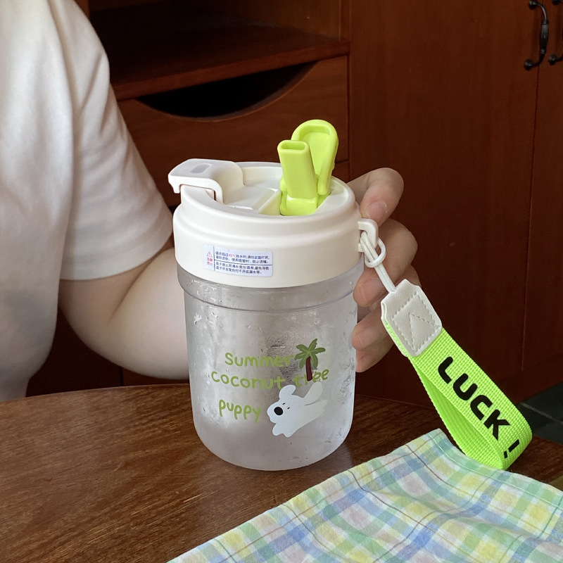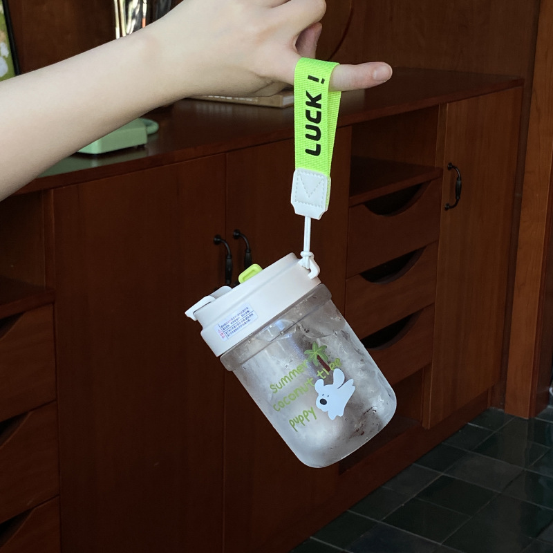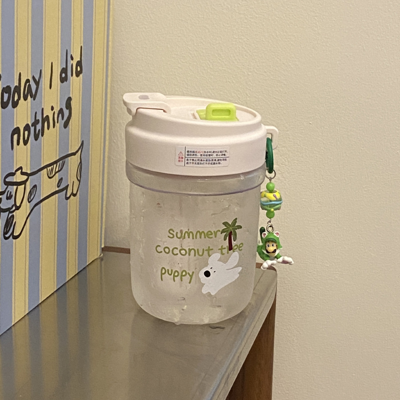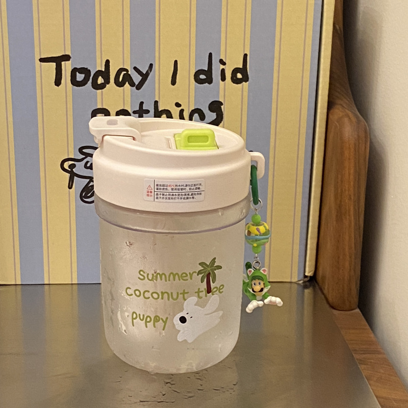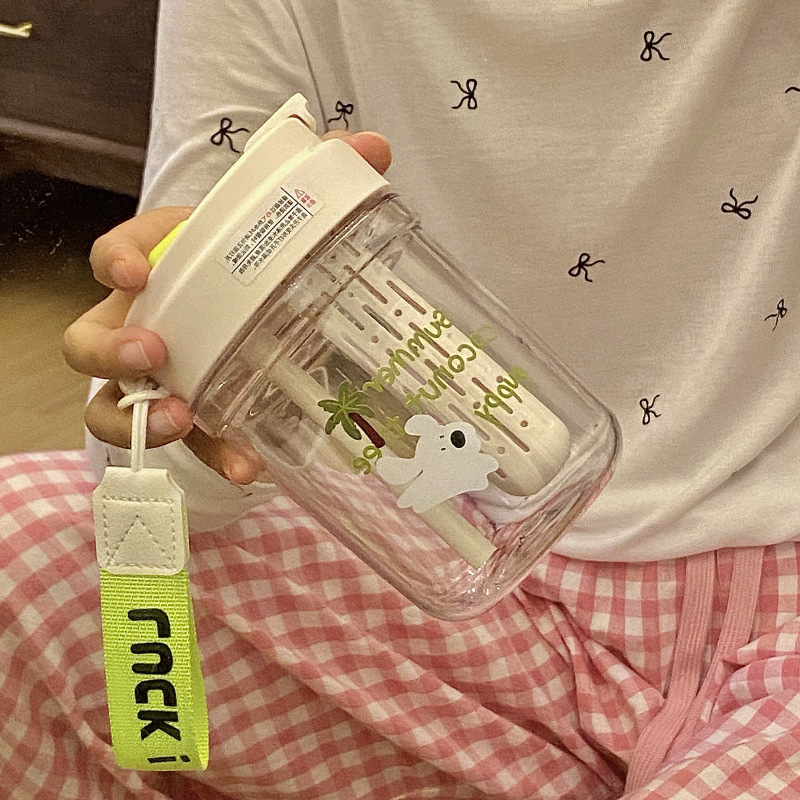 여름 코코넛 강아지 밀봉 밀짚 컵 플라스틱 컵 고온 방지 및 무취 Tritan 차 물 분리스토어 가기