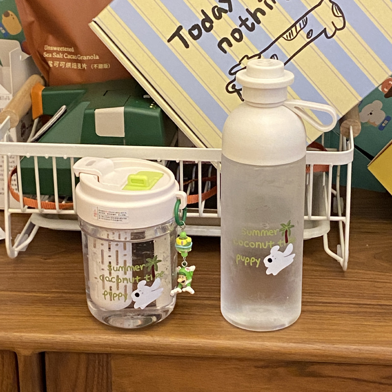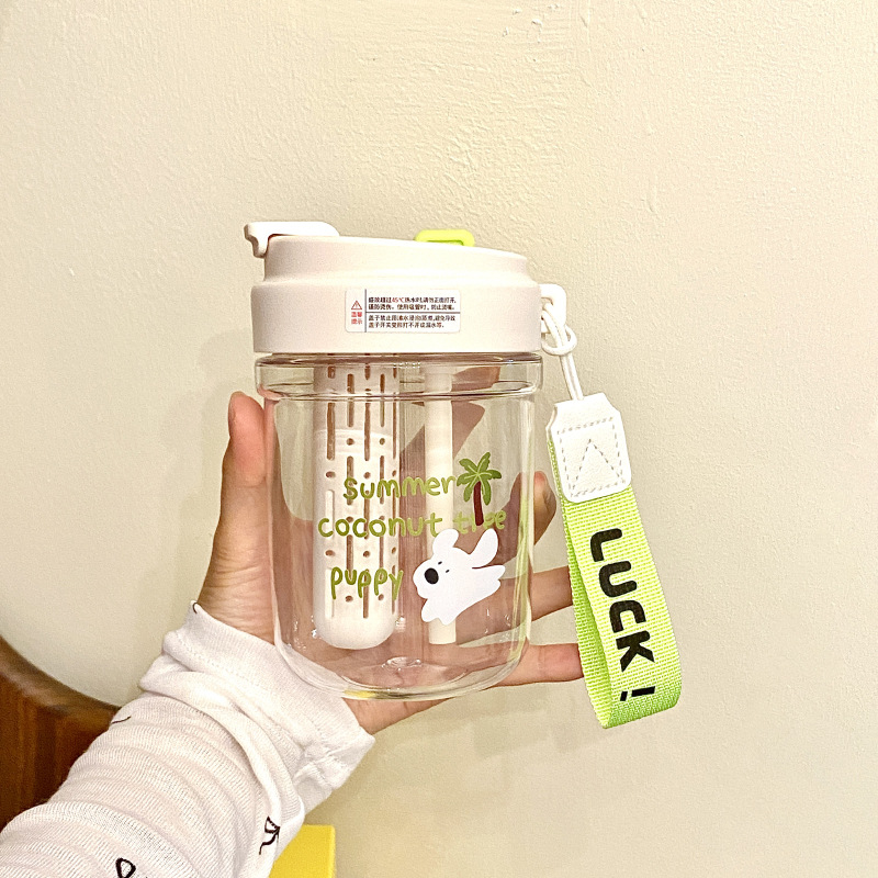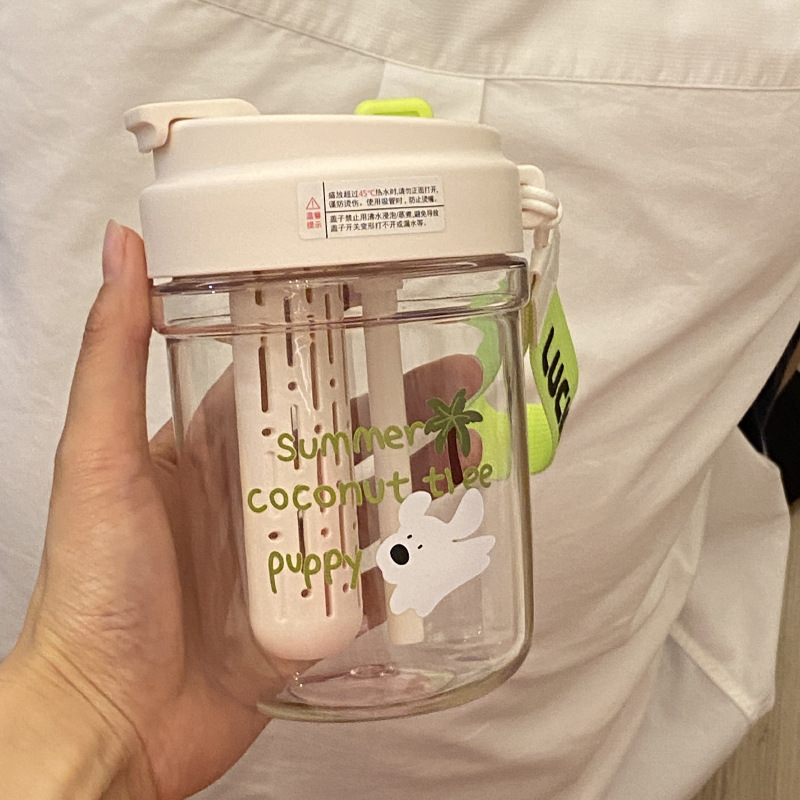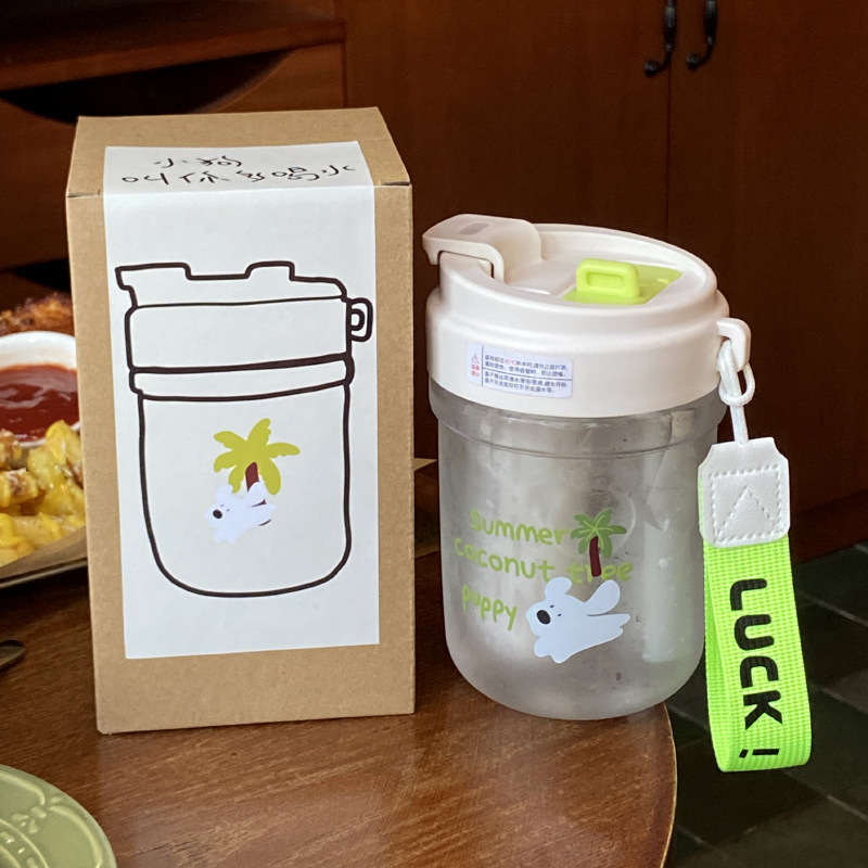 여름 코코넛 강아지 밀봉 밀짚 컵 플라스틱 컵 고온 방지 및 무취 Tritan 차 물 분리