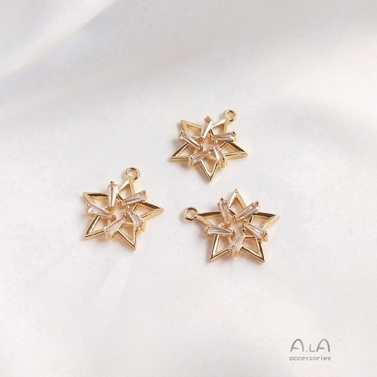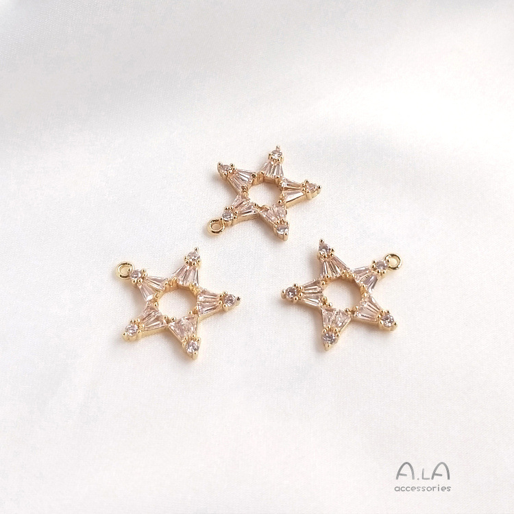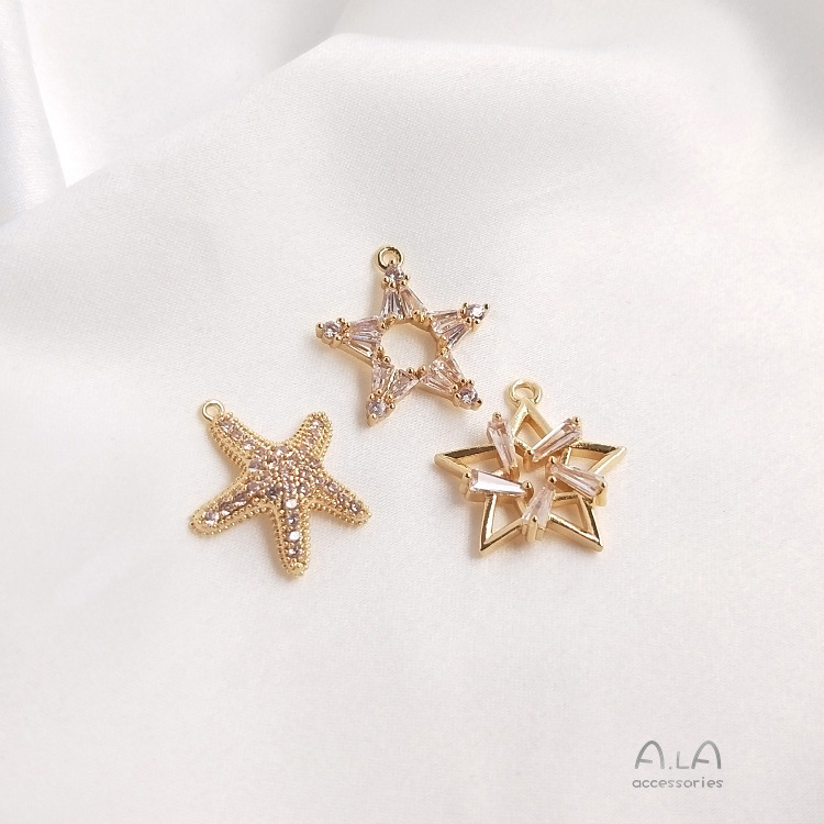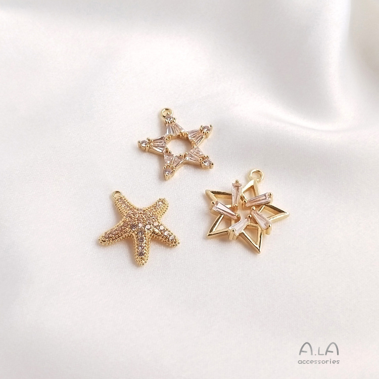 컬러 보존 14K 골드 상감 지르콘 다섯개 별 6 개 별 불가사리 펜던트 DIY 목걸이 쇄골 체인 귀걸이 펜던트스토어 가기