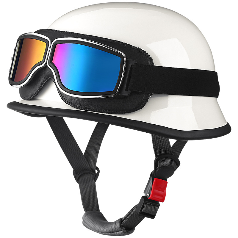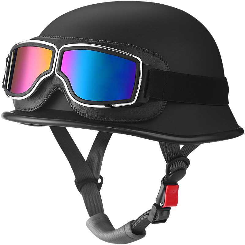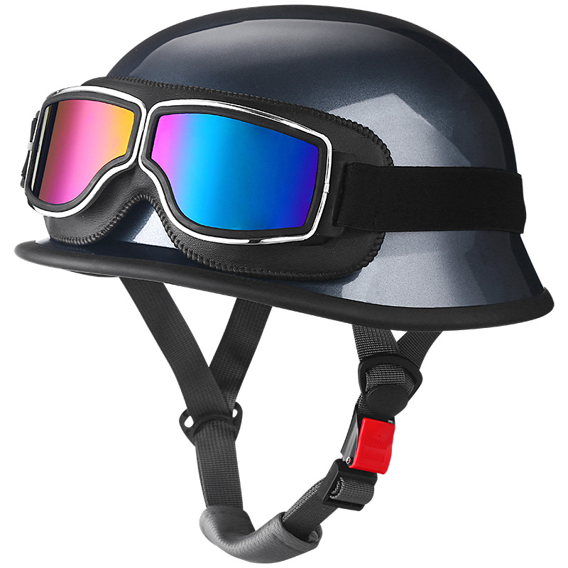 고글이 달린 독일 스타일의 스틸 헬멧, 복고풍 크루즈 하프 헬멧, 할리 오토바이 헬멧, 조수 헬멧, 군인 헬멧