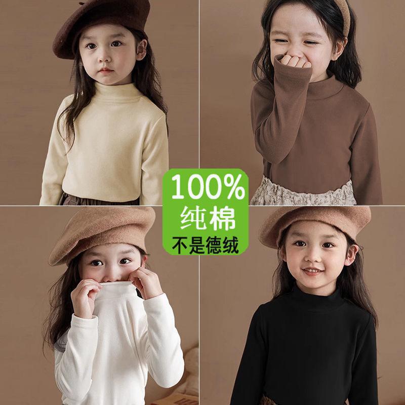 아동용 티셔츠 가을, 겨울 새로운 순수 코튼 소녀 소년 긴팔 셔츠 베이비 루즈 캐주얼 하프 터틀넥 탑스토어 가기