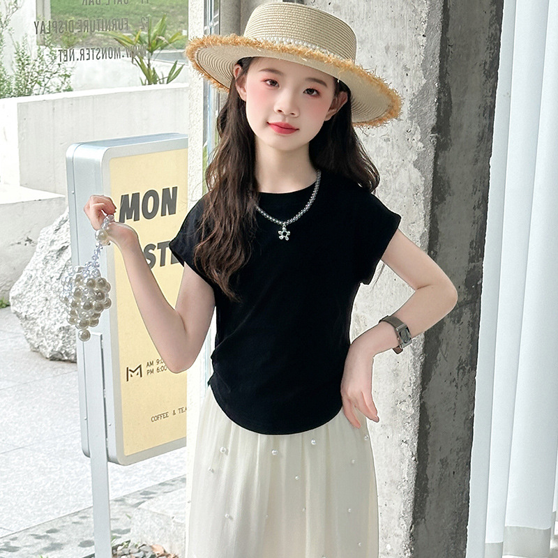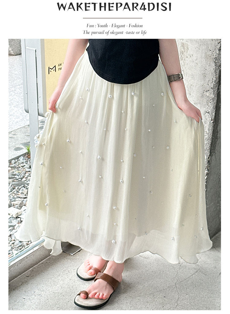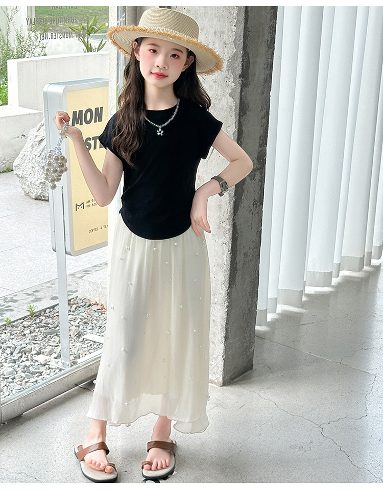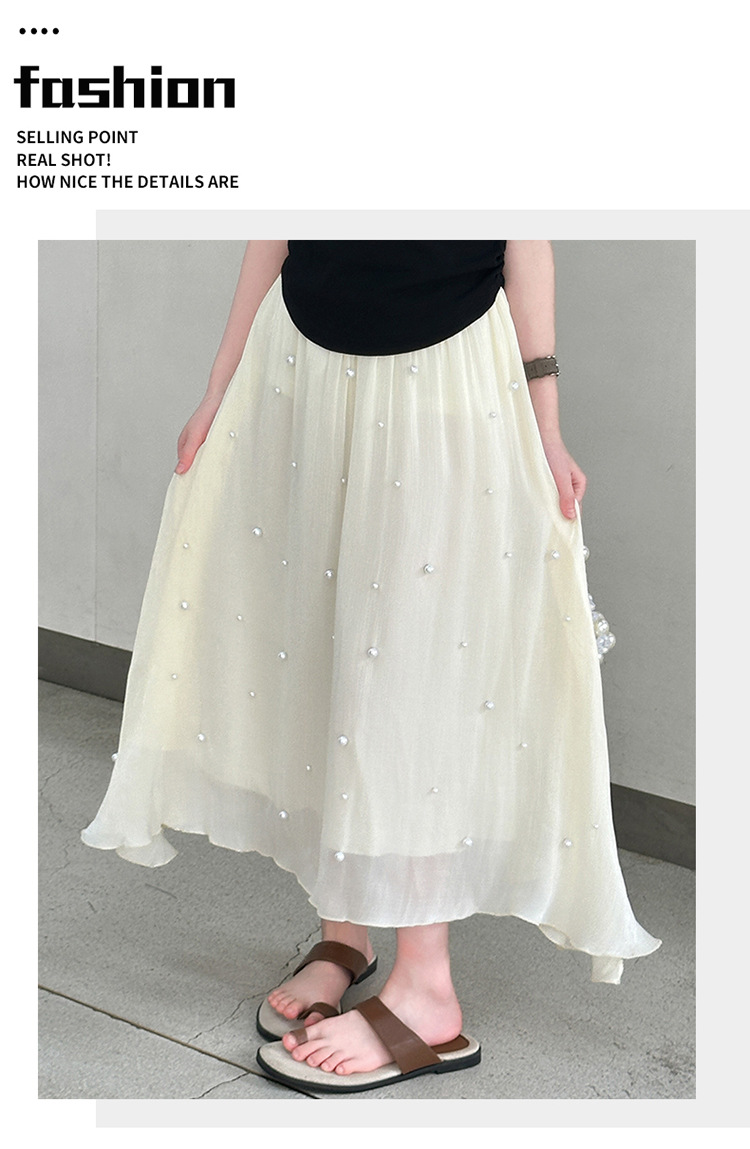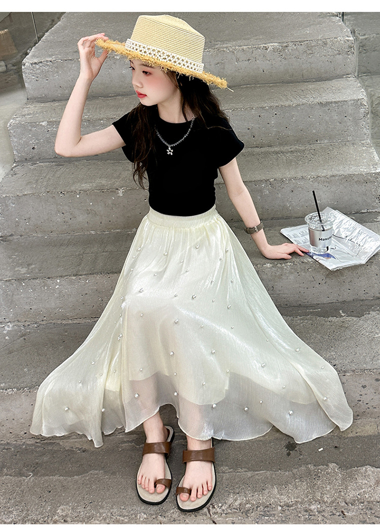 여자 프릴 구슬 스커트 여름 드레스 2025 새로운 스타일 어린 소녀 유행 높은 허리 중간 길이 슈퍼 요정 스커트